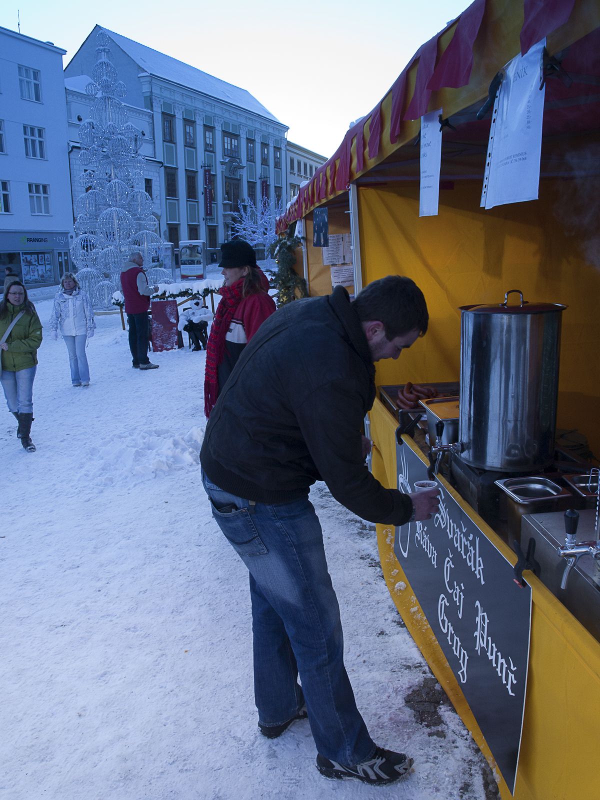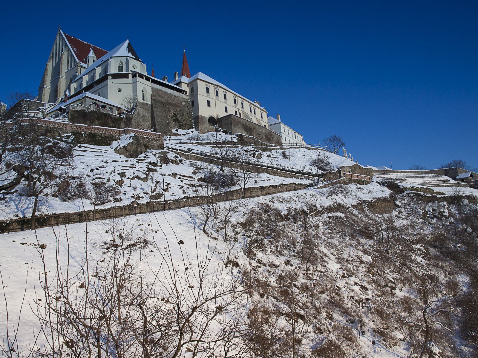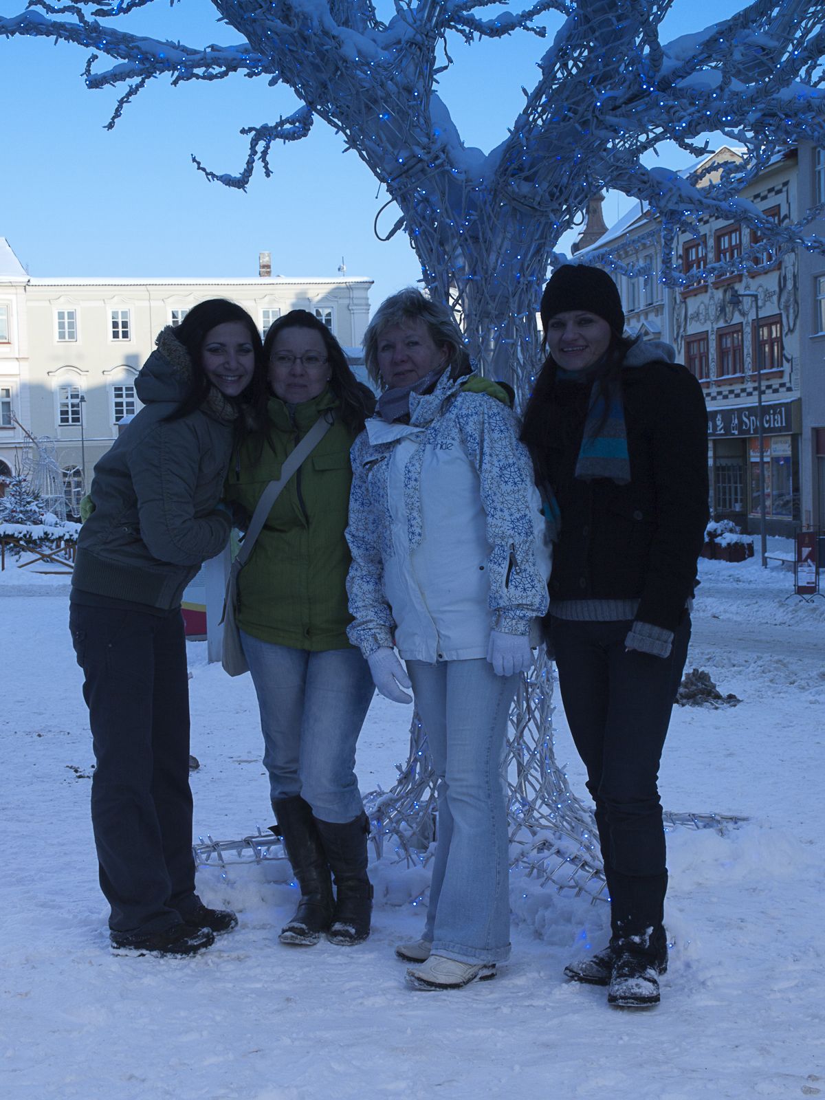 Z muzea stoupáme z údolí Dyje směrem ke kostelu sv. Mikuláše. Cestou potkáváme Mihala s Verčou. Někteří, pravda, mají s výstupem problémy, ale nakonec vše dobře dopadne a kocháme se pohledem do prosluněného údolí. Pokračujeme dále na náměstí, kde v prvé řadě zaujme stánek se svařákem. Řidiči mají smůlu. Projdeme vánoční trhy a pomalu se vracíme zpět k autům. Ještě nákup drobností v hypermarketu a s nastávajícím soumrakem přijíždíme k našemu penzionu v Lesné. Ten je situován budově nejspíše bývalého statku. Od pohledu to vypadá docela zajímavě. První zádrhel, pusto prázdno. My co nebydlíme, házíme tašky do chodby k bydlícím s tím, že stejně jdeme na večeři, protože zde se momentálně nevaří. Nakonec se však daří domácího sehnat mobilem, takže nás nasáčkuje do zbývajících pokojů s tím, že s námi počítá až od šesté.