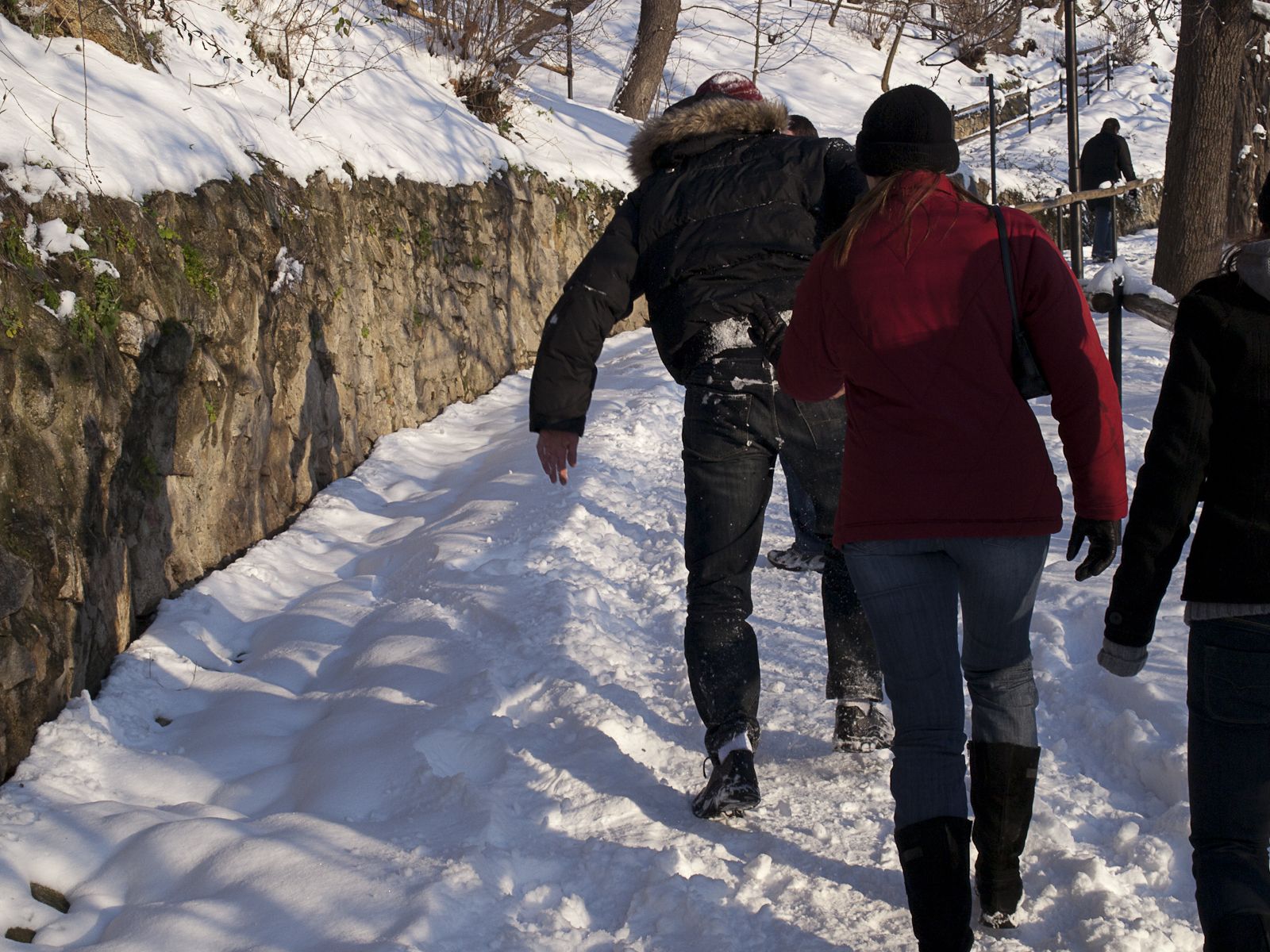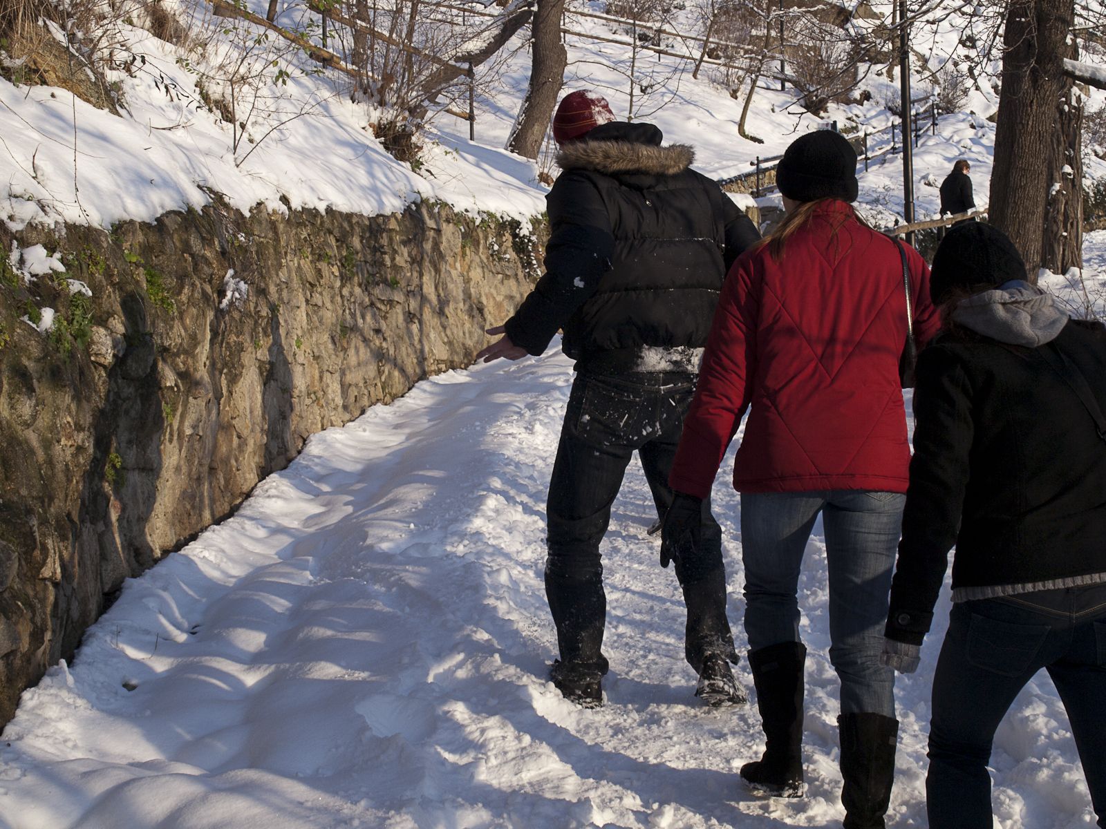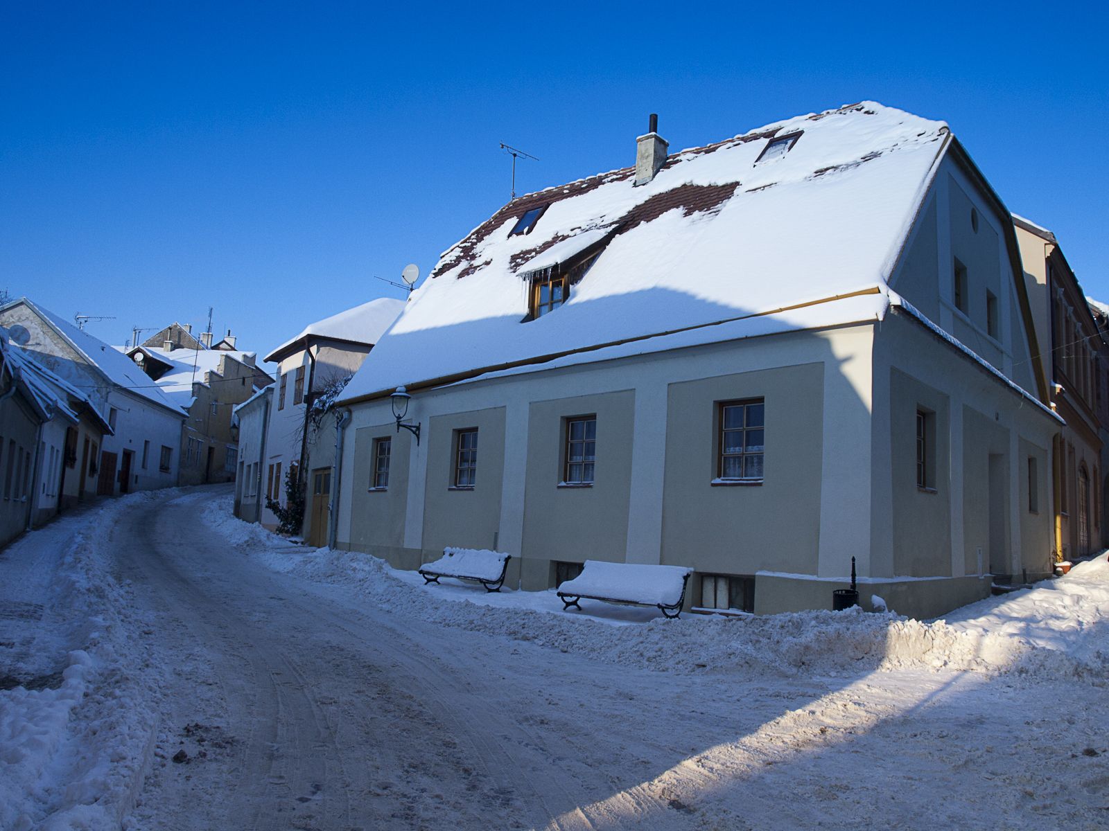 Z muzea stoupáme z údolí Dyje směrem ke kostelu sv. Mikuláše. Cestou potkáváme Mihala s Verčou. Někteří, pravda, mají s výstupem problémy, ale nakonec vše dobře dopadne a kocháme se pohledem do prosluněného údolí. Pokračujeme dále na náměstí, kde v prvé řadě zaujme stánek se svařákem. Řidiči mají smůlu. Projdeme vánoční trhy a pomalu se vracíme zpět k autům. Ještě nákup drobností v hypermarketu a s nastávajícím soumrakem přijíždíme k našemu penzionu v Lesné. Ten je situován budově nejspíše bývalého statku. Od pohledu to vypadá docela zajímavě. První zádrhel, pusto prázdno. My co nebydlíme, házíme tašky do chodby k bydlícím s tím, že stejně jdeme na večeři, protože zde se momentálně nevaří. Nakonec se však daří domácího sehnat mobilem, takže nás nasáčkuje do zbývajících pokojů s tím, že s námi počítá až od šesté.