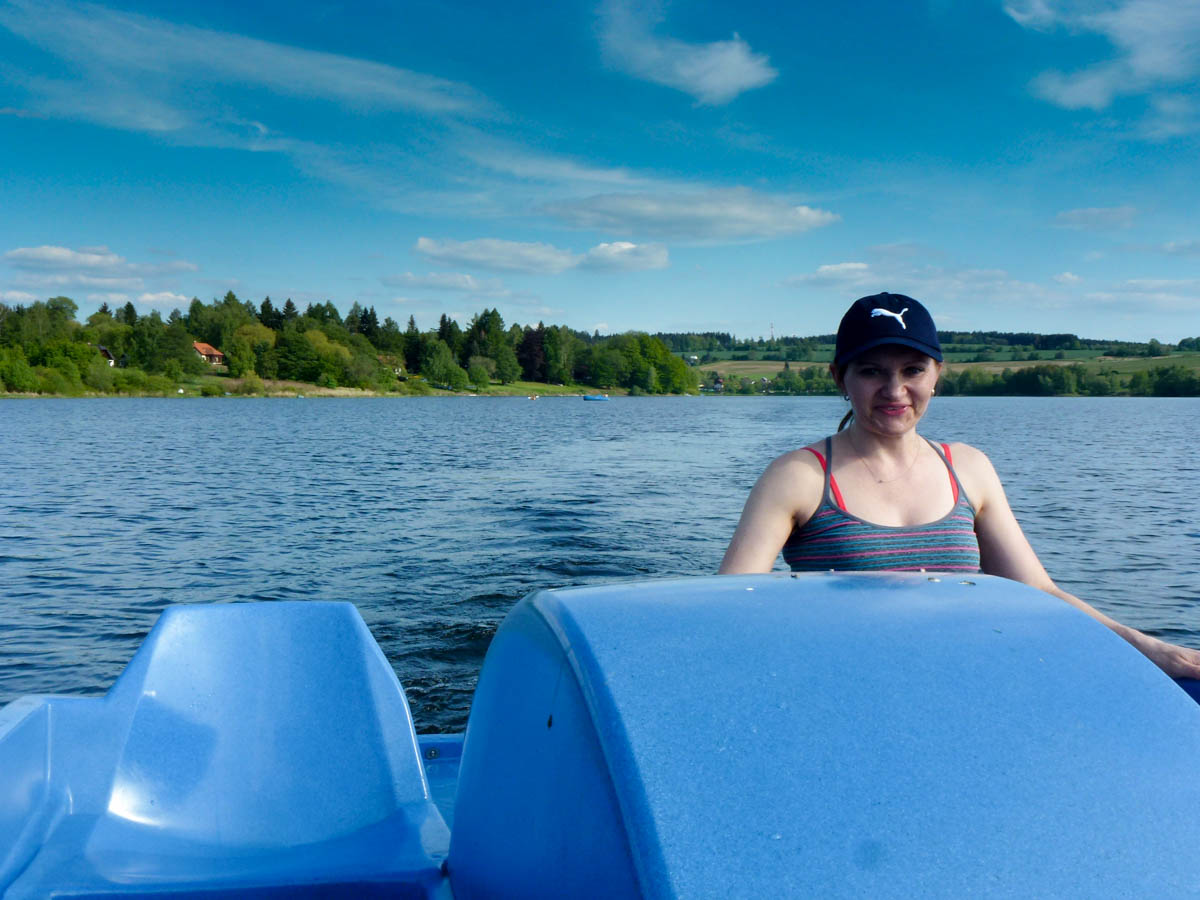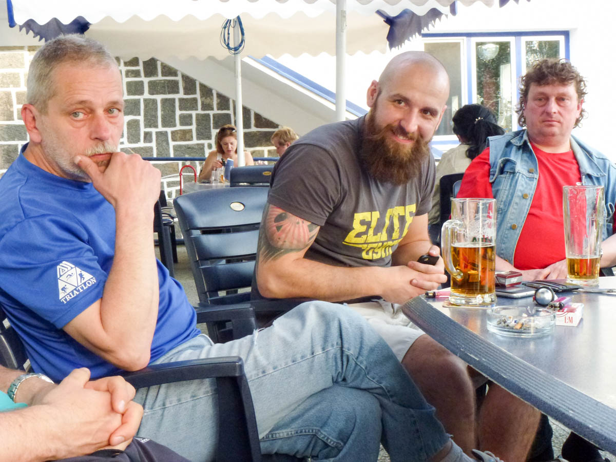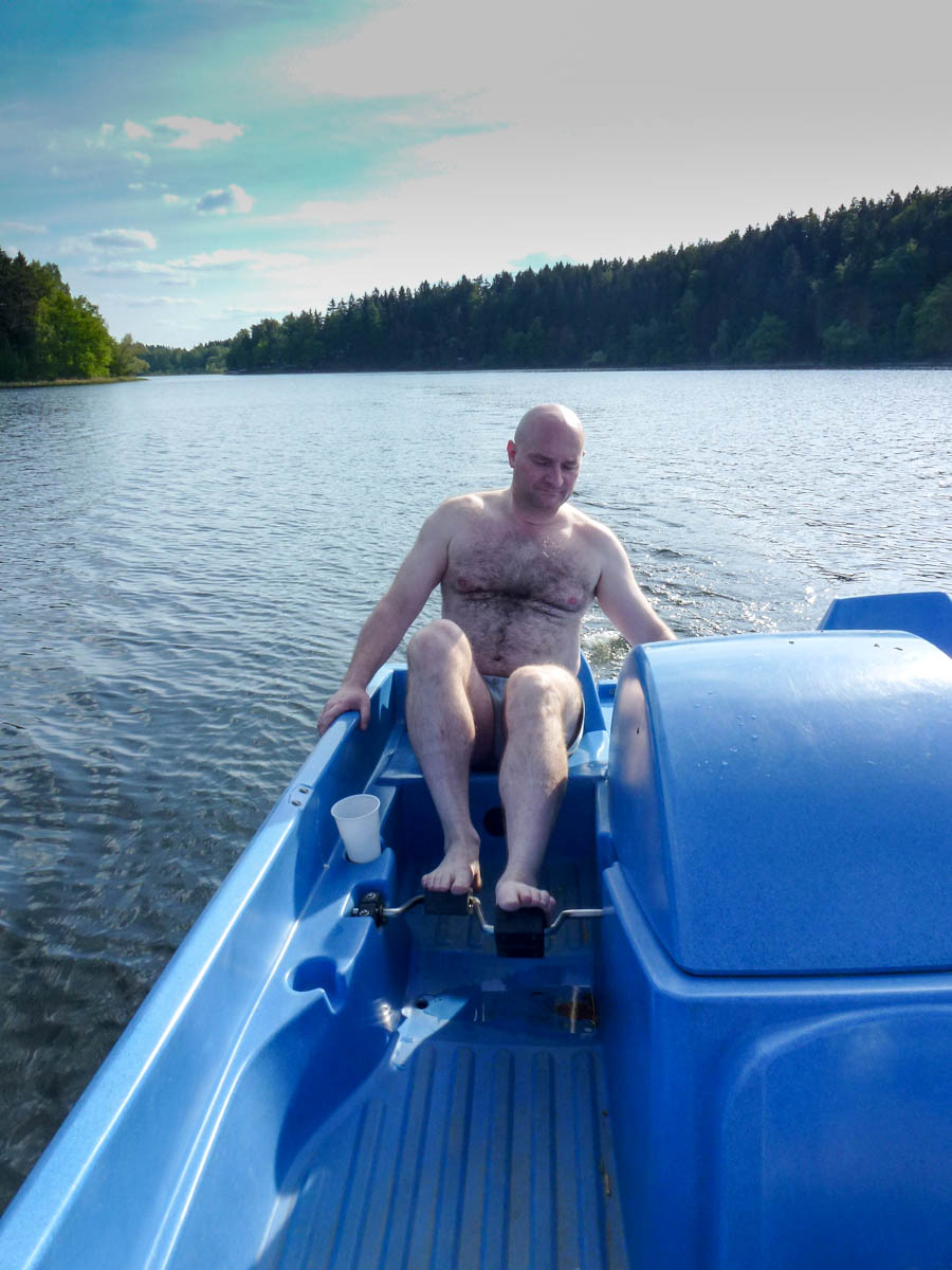 V sobotu společná vyjížďka, návštěva moto muzea, oběd. Kdo chtěl, mohl se projet na šlapadle, čehož využil Brachacz s Vikim, aby si zajeli na druhý břeh na Radegasta. Bohužel si zabavili asi to nejlepší šlapadlo, které tam bylo. S Pájou jsme nejdříve osedlali labuť, která byla naprosto brutální a vzdali jsme to po 100 metrech. Další šlapadlo mělo funkční pohon jen na jedné polovině. Třetí už fungovalo jakž takž, ale šlo celkem ztuha. Upřímně, při těch vůlích na hřídelích, které to mělo, se není čemu divit. Nicméně jsme se hecli a zajeli pod Oheb a zpátky.