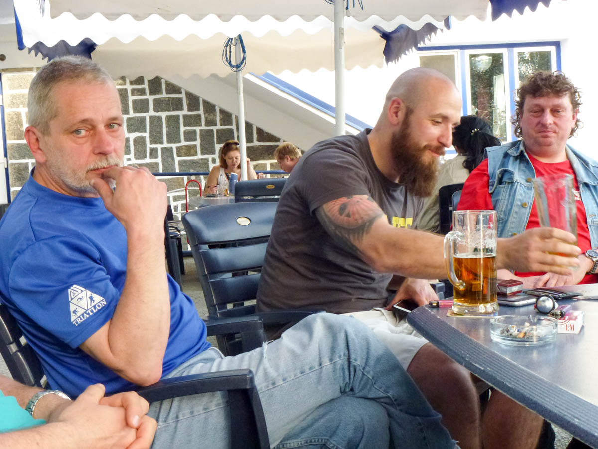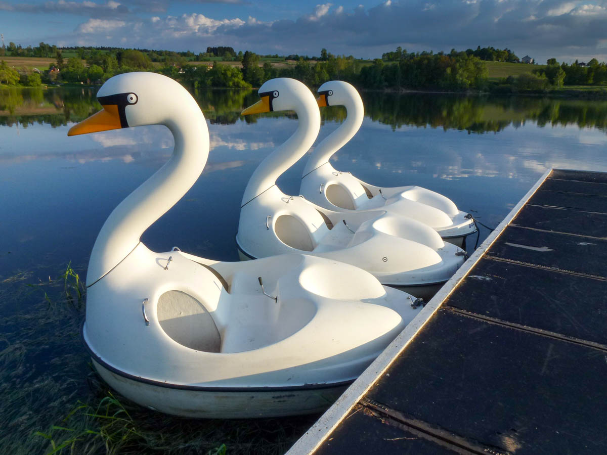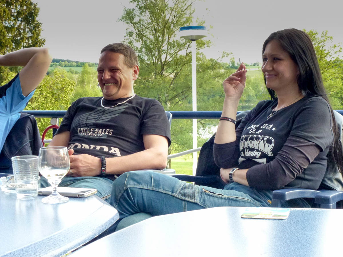 V sobotu společná vyjížďka, návštěva moto muzea, oběd. Kdo chtěl, mohl se projet na šlapadle, čehož využil Brachacz s Vikim, aby si zajeli na druhý břeh na Radegasta. Bohužel si zabavili asi to nejlepší šlapadlo, které tam bylo. S Pájou jsme nejdříve osedlali labuť, která byla naprosto brutální a vzdali jsme to po 100 metrech. Další šlapadlo mělo funkční pohon jen na jedné polovině. Třetí už fungovalo jakž takž, ale šlo celkem ztuha. Upřímně, při těch vůlích na hřídelích, které to mělo, se není čemu divit. Nicméně jsme se hecli a zajeli pod Oheb a zpátky.