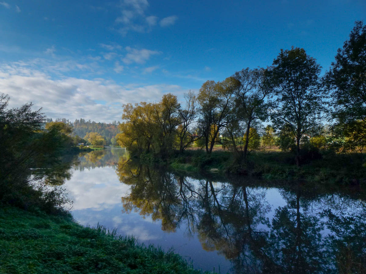 Podzimní sraz se uskutečnil v malebném Posázaví, ve Vlastějovicích, nedaleko Zruče nad Sázavou. Nemám to daleko, jen něco přes sto kilometrů, takže stíhám dojet za soumraku i po práci. Počasí se (naštěstí opět) navzdory pesimistické výhledy z dlouhodobé předpovědi se přetavily v babí léto. Slunce svítí, stromy si oblékly podzimní kabáty, a když vytlačím bramboru před garáž, je dvacet stupňů.