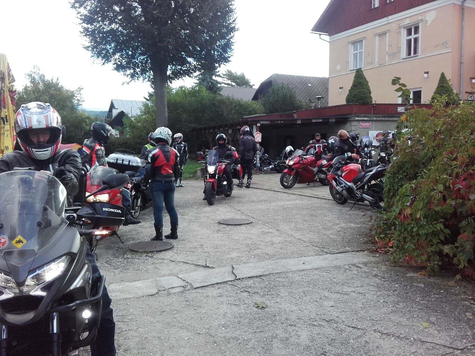 Podzimní setkání klubu se uskutečnilo v Bikers Hotel Dolte Sobotín. Pátek byl ve znamení přivítaní a seznámení se s novými tvářemi. Jak už to tradičně bývá. Počasí přálo a tak se sedělo venku. Povídali jsme si kde kdo byl o letošní dovolené a jaké měl počasí. Někteří vyprovokovali (Jarák :) ) ke koupání za svitu měsíce a blesků fotografů.