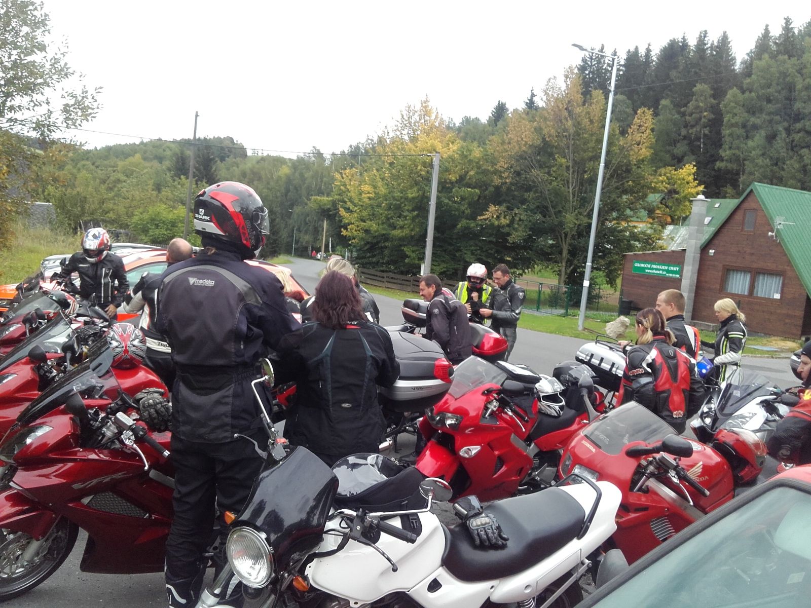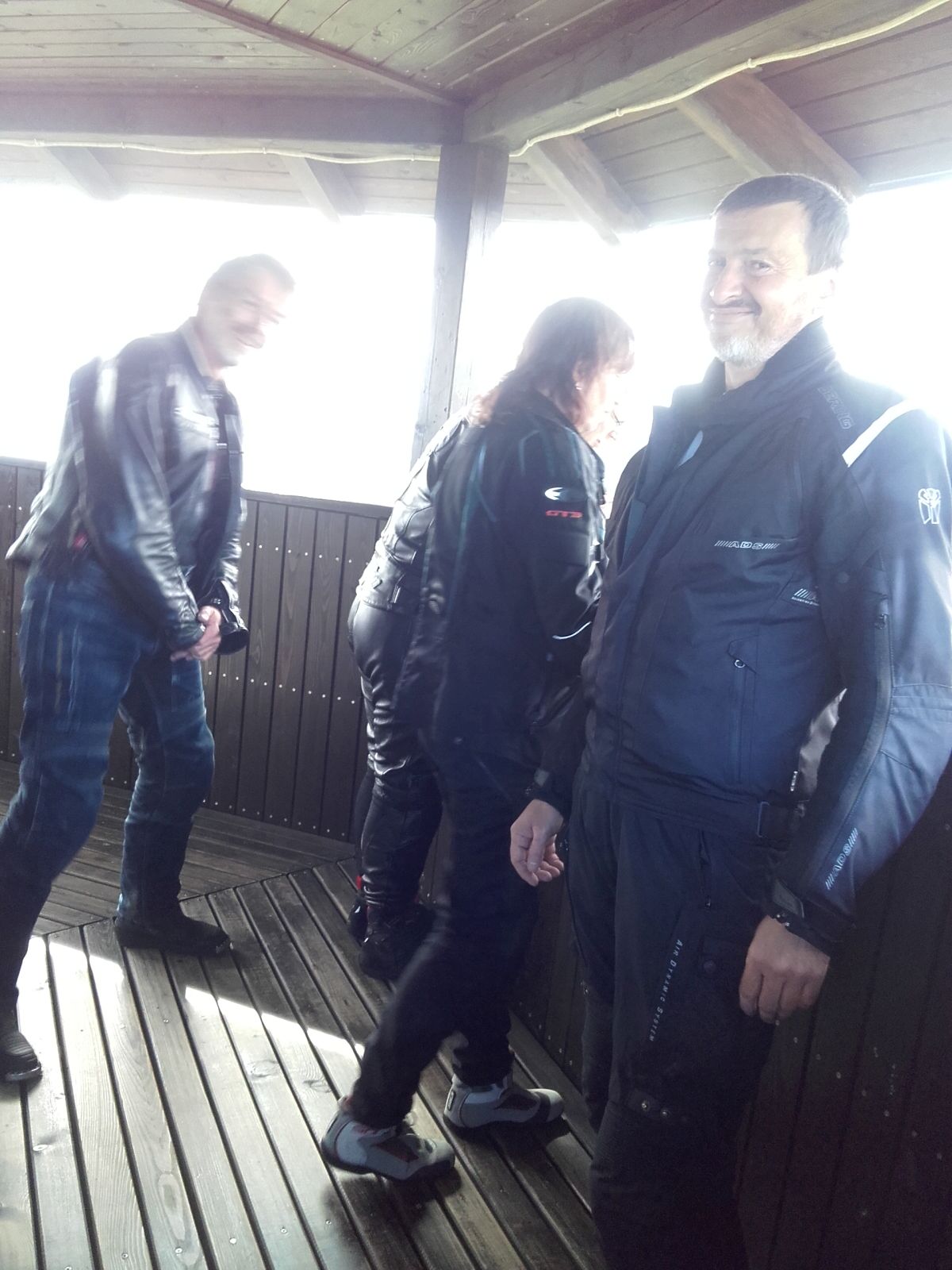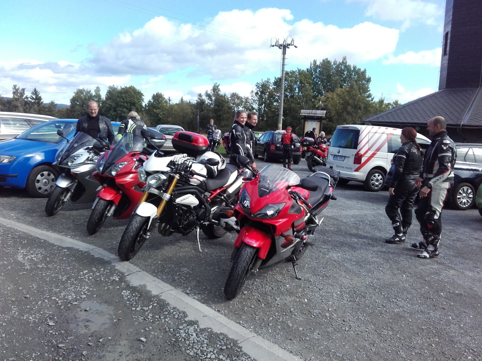 Na trať se po menších komplikacích vyrazilo pár minut po desáté. A ups... na Skřítek nás dojelo jen pár. Na nejbližší pumpě jsme počkali na ostatní. Z časových důvodů už jsme jeli společně. Další zastavení bylo až na rozhledně u Dolní Moravice. Po pár zatáčkách a hledání kde se občerstvíme (což ještě musím do příště doladit) nás v Andělské Hoře dojel Dave. Následovaly další zatáčky směrem na sever na prohlídku Poštovní štoly ve Zlatých Horách. Vlastně dolu, jak nám bylo řečeno. Scalla a Renáta, která dojela za námi autem, už na nás čekali. Odložili jsme helmy a vyfasovali přilby a svítilny. Po hoďce a půl nasedli zpět na své stroje, které nám dávají křídla :-), a jeli vymrzlí nejkratší cestou přes Rejvíz a ČHS zpět do Dolte. Teda většina to vzala zpět na Vrbno p. Pradědem. Autor tratě měl v úmyslu hlavně nejet stejnou cestou. Nedělní ráno opět chladnější a větrnějsí, ale cesta na Ostravu suchá. Dojezd domů bez problémů. Zbývalo vybalit, najíst se a vrhnout se na kontrolu Jízdních výkazů. Moc děkuji i za vtipné odpovědi, které potěšili.