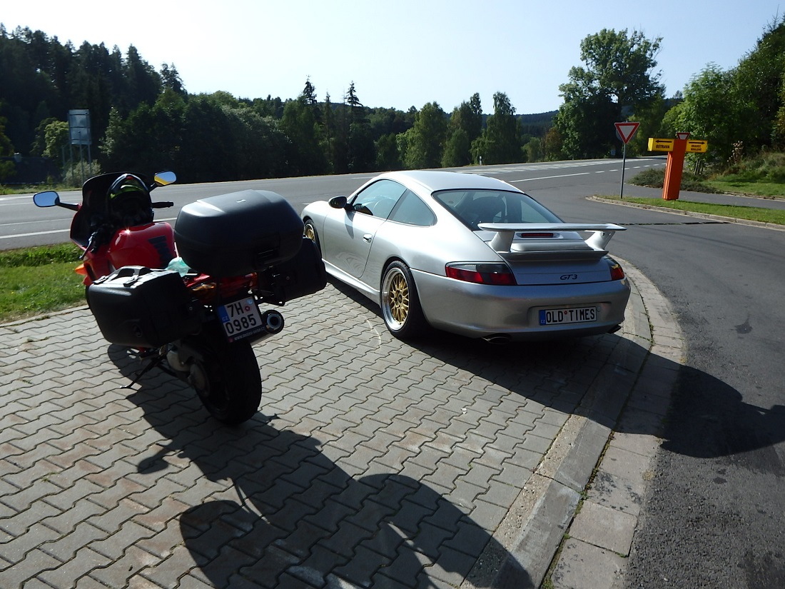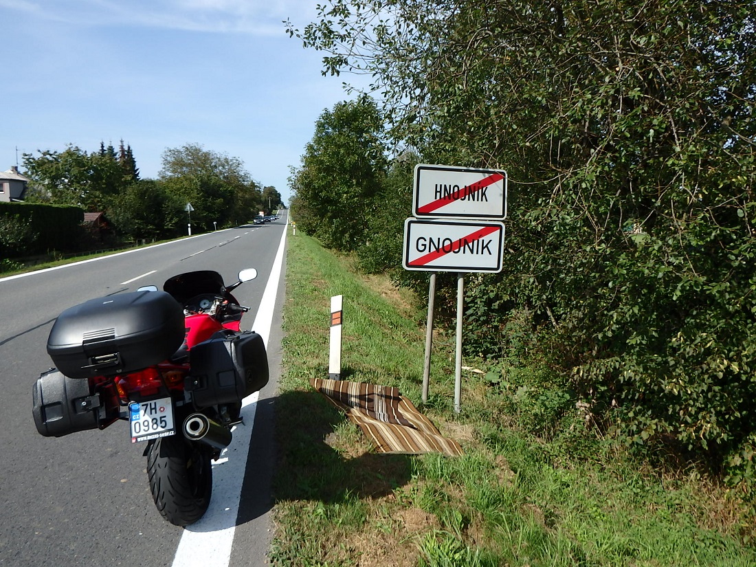 Nedělní ráno už bylo věnováno odjezdu domů. Po rozloučení s ostatními jsem se vydal podle svého původního plánu dále na východ, chtěl jsem navštívit nejvýchodnější místo ČR. To byl v podstatě pozůstatek hromadné karantény z jara tohoto roku, kdy jsem se doma nudil a všude bylo zavřeno. Takže jsem po náhlém vnuknutí mysli vydal na návštěvu nejsevernějšího místa republiky, které od nás nebylo daleko. Takže jsem si nyní chtěl doplnit další místo, když už jsem tak blízko. Vehrvolf mi poradil trasu a po projetí Frýdku-Místku jsem zamířil na Jablunkov a dále na východ. Hledanou lokalitu jsem nalezl bez problémů, kdybych nebyl bábovka, tak jsem si mohl zajet na parkoviště, které bylo ještě blíže a nemusel jsem se při pěším přesunu potit 1,5km tam a zpět v kombinéze. Splněno jsem měl v půl dvanácté. Po chvilce přemýšlení a dumání nad mapou jsem se rozhodl pro sázku na jistotu a zpáteční cestu přes F-M a Ostravu. Bloudit někde severní Moravě a hledat zkratku po místních silnicích na Opavu se mi vážně nechtělo. I tak se mi povedlo trošku zakufrovat, odměnou mi ovšem byla jízda po silnici č.475, kde jsem viděl i poctivé ostravské haldy. Zpáteční cesta po 11 byla ještě lepší než ta páteční. Slabý provoz a zářijové nedělní slunko-to nemělo chybu. Cestou zpět jsem jel i přes Sobotín, tak mne napadlo podívat se kde je ten legendární podnik Dolte, ovšem přímo v obci jsem viděl, že těch podniků je tu více, a tak jsem to vzdal. Čas mne neúprosně tlačil, chtěl jsem dojet za světla. Před Červenovodským sedlem jsem při zastávce na pití na pumpě potkal sraz vozítek Porsche. Bylo to pěkné vidět a hlavně slyšet pohromadě GT 3, GT 4 a Carreru. Samotné serpentinky sice lákají na kolínko, ale když jsem viděl tu rozlitou naftu po okrajích vozovky a vzpomenul jsem si na Scallův článek, tak jsem jel na slušňáka. Až tu jednou opraví ten rozbitý povrch v horních partiích, tak to bude o dost lepší. Zbytek cesty: dlouhé, ale parádní svezení. Domů jsem dorazil v 19.10, zadek zralý na výměnu a na tachu za ten den bez 4km rovných 500 kilásků. Takhle jsem se už dlouho neprojel. Vehrvolfe, děkuji.