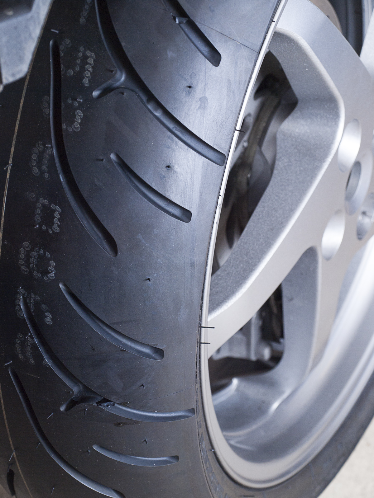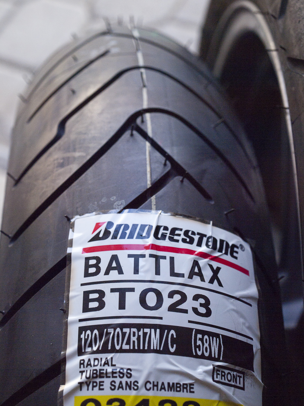 S pneumatikami Bridgestone BT021 jsem byl vcelku spokojen, až na jejich slabší životnost. Původně jsem měl záměr otestovat něco z produkce Metzeleru, ale shodou okolností v době, kdy se BT021 blížila ke konci své životnosti, začal výrobce prodávat jejich nástupce BT023. Takže jsem zakoupil sadu a Metzeler někdy příště.