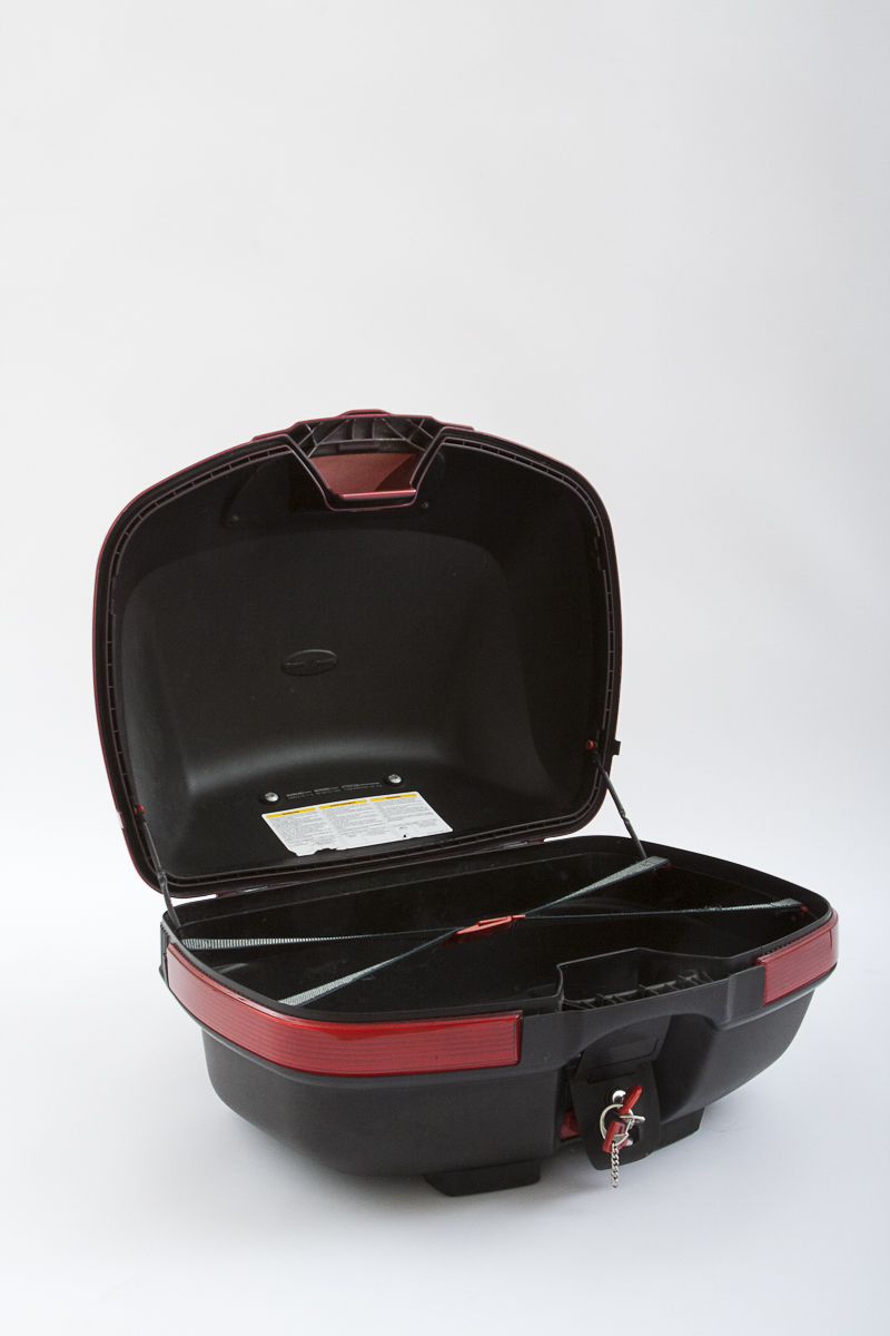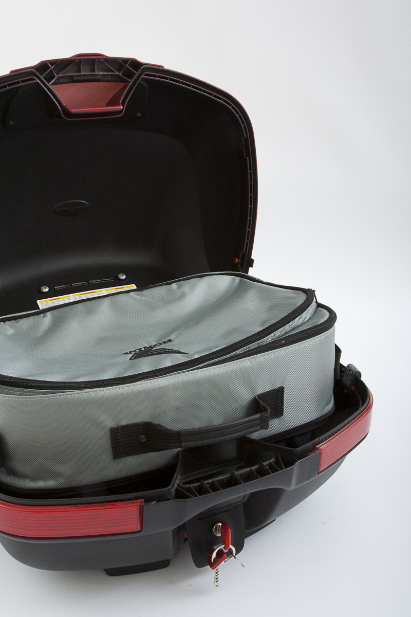 Kufr má 45 litrů. To není málo, ale např. GIVI se svým kufrem Maxia nabízí o 10 litrů více. Sice není tak hezký, ale je levnější a objem se počítá. Navíc umožňuje montáž nosiče (zahrádky) na víko, což se hodí, pokud jedete ve dvou a chcete přibalit stan. Pak vrtat do originálu je docela škoda. Vnitřní tašku začalo GIVI nabízet taky.