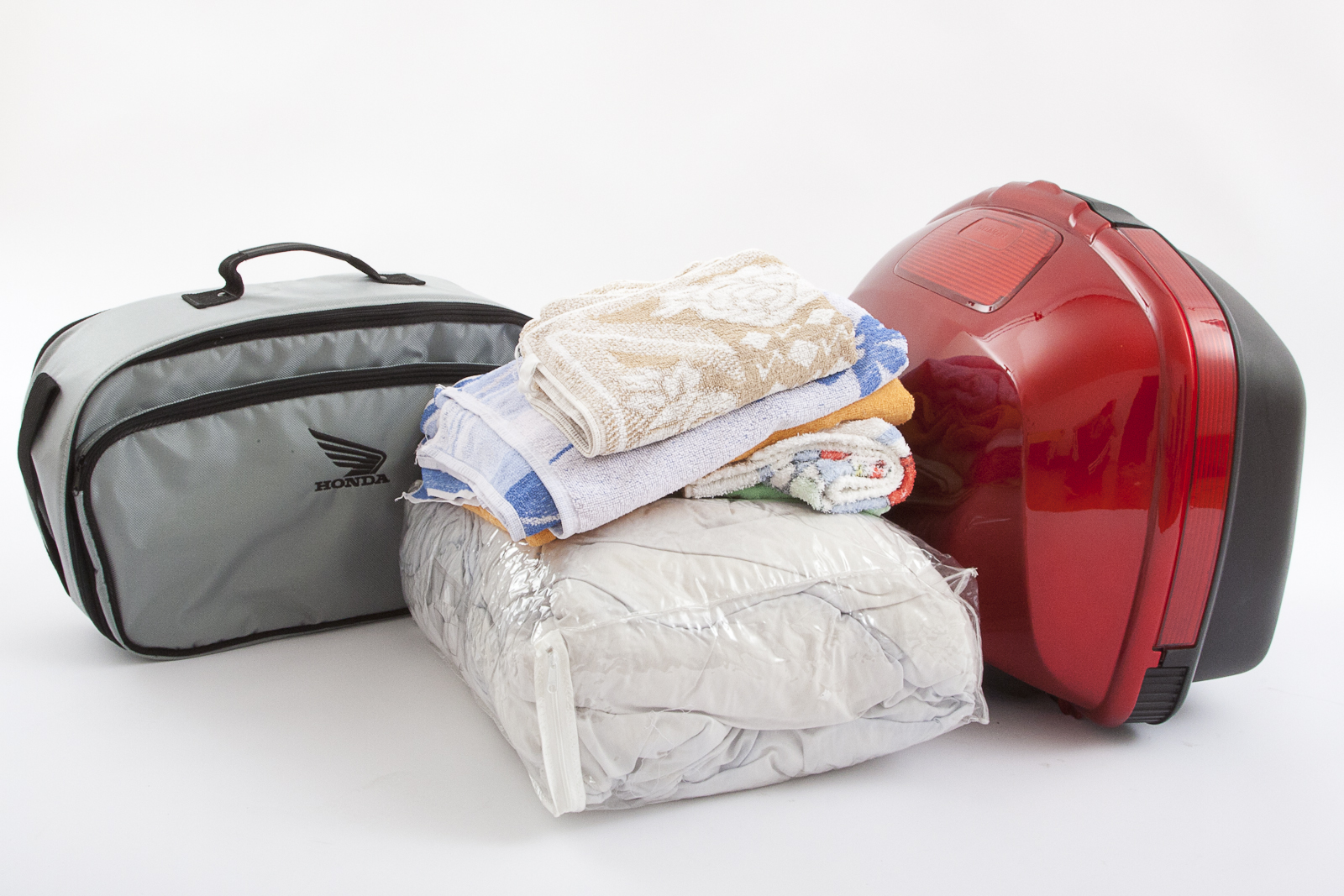 Do bočních kufrů se podobně jako do horního kufru dodávají textilní tašky s popruhem. Vzhledem k tomu, že tašky nekopírují tvar kufru (nezasahují do rozšířeného prostoru pod výfuky), je i jejich užitná hodnota menší. Jediný přínos na cestě je v tom, že umožňuje do kufrů sbalit věci, které tu a tam potřebujete vyndat. Jako nepromok, láhev s vodou, sprej s mazivem na řetěz, které vložíte do taškami nevyužitých výklenků, přičemž ostatní věci se vám nesypou ven.