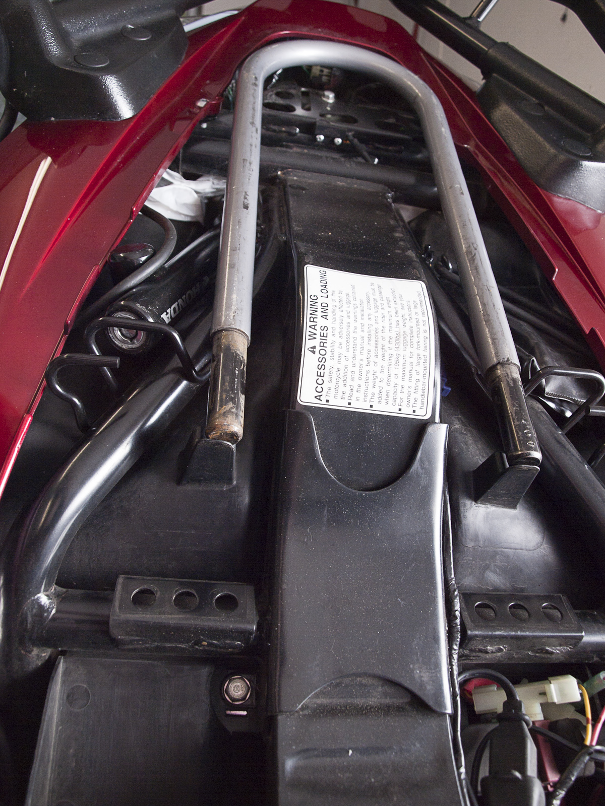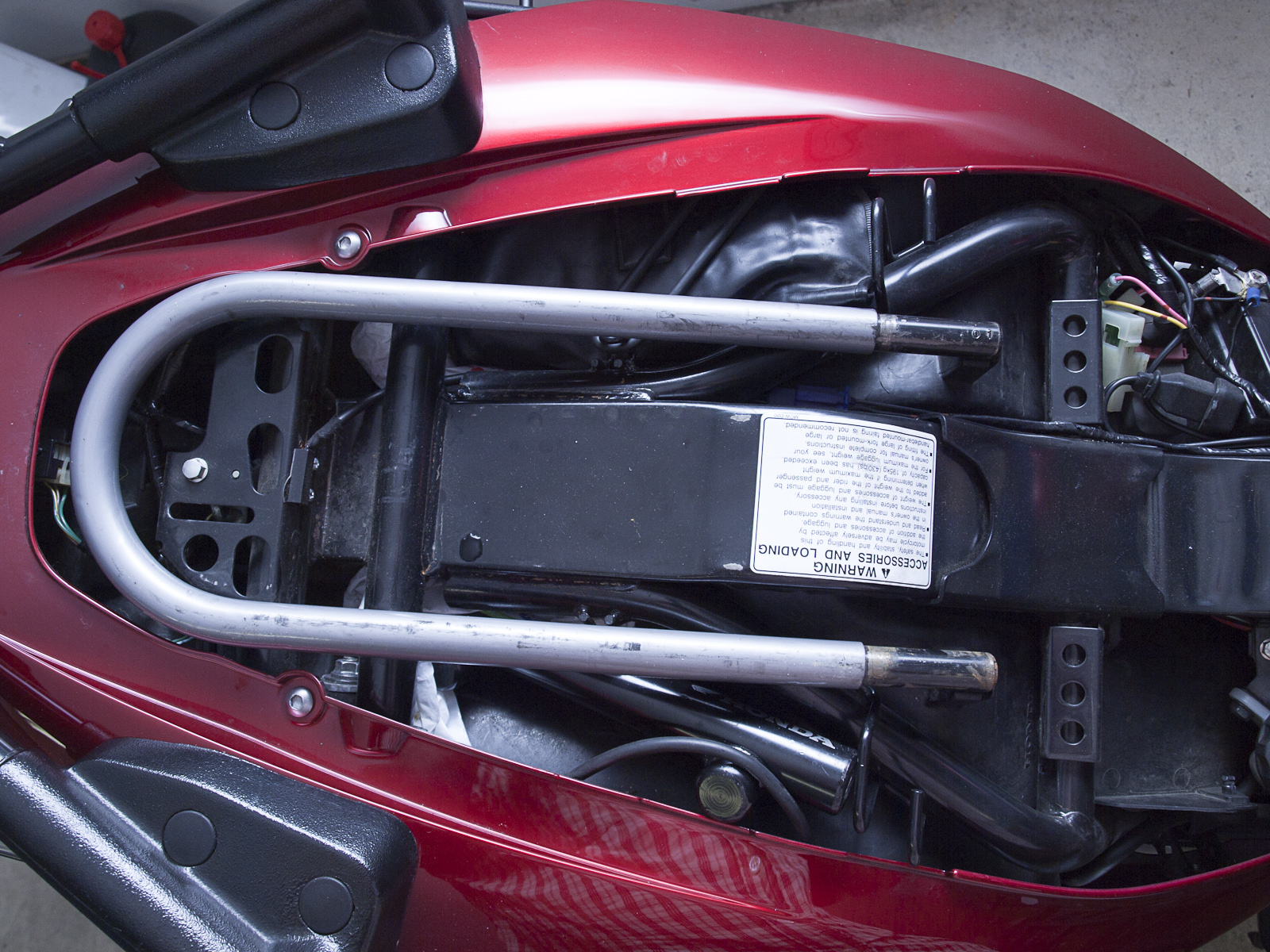 Držáky kufrů jsou trubkové. Nahoře jsou uchycené pod madly nebo pod nosičem horního kufru. Záleží na vás, jakou konfiguraci si zvolíte. V dolní části jsou držáky uchyceny za držáky stupaček spolujezdce a příčnou výztuhu pod zadním blatníkem, přičemž svým tvarem těsně kopírují profil motorky.