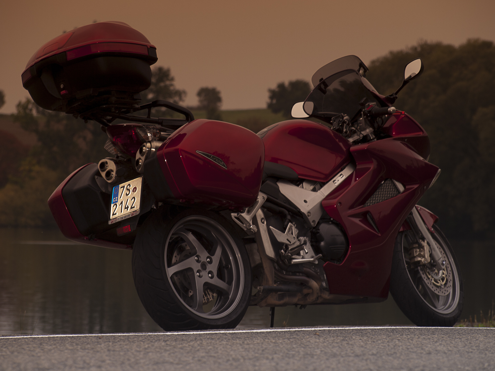 Jestliže je horní kufr drahý, pak boční kufry jsou drahé nehorázně. Možná je to dáno objemem výroby, protože horní kufr Honda ve shodné podobě nabízí na více modelů, boční kufry zřejmě díky svému specifickému tvaru, nebudou pasovat na nic jiného, mimo VFR. Díky vybrání na vnitřní straně kopírují tvar výfuků a nezvyšují tolik šířku plně naloženého stroje.