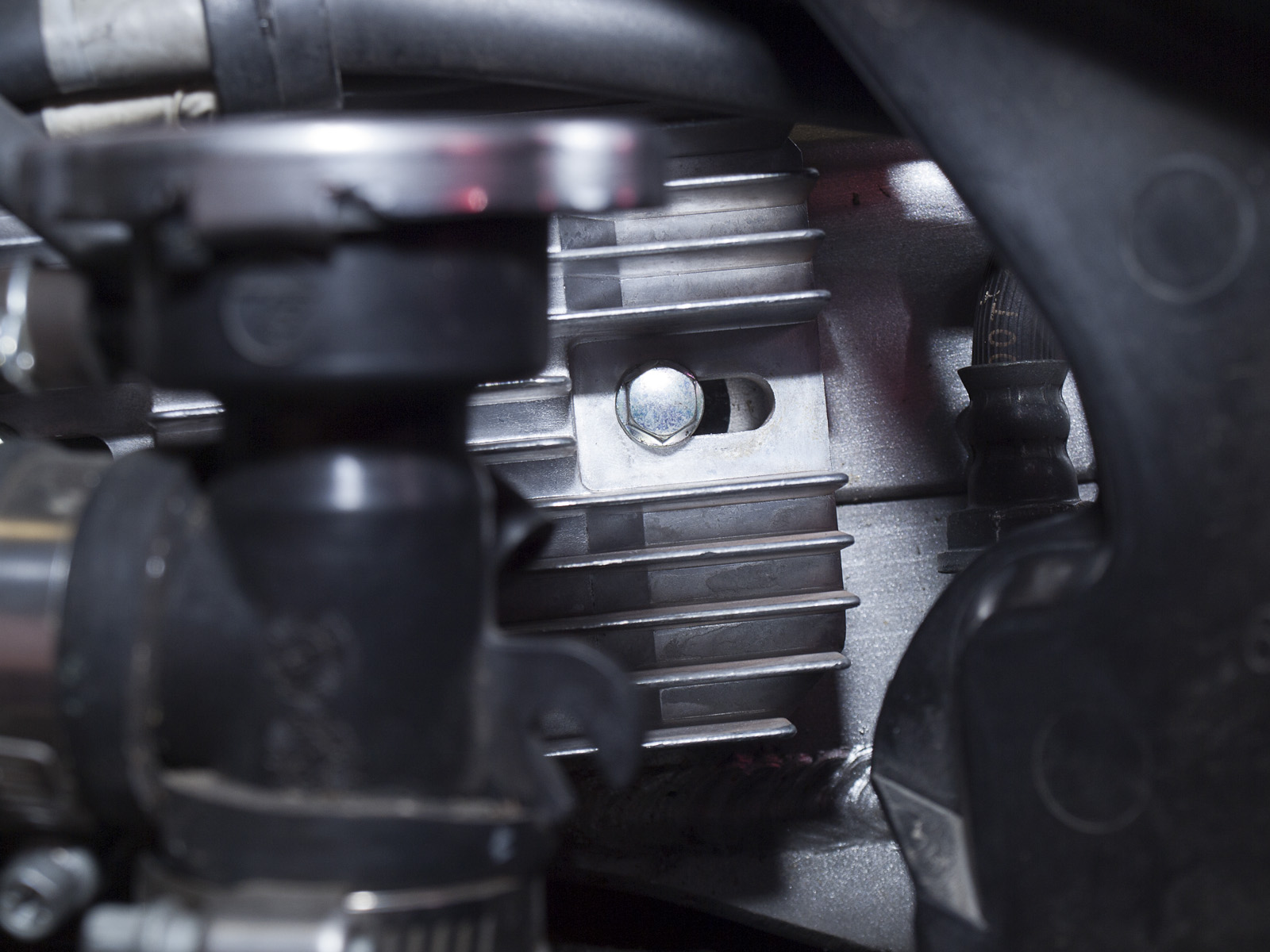 - Nasaďte zpět výpustný šroub (ideálně s novou hliníkovou podložkou) a dotáhněte.