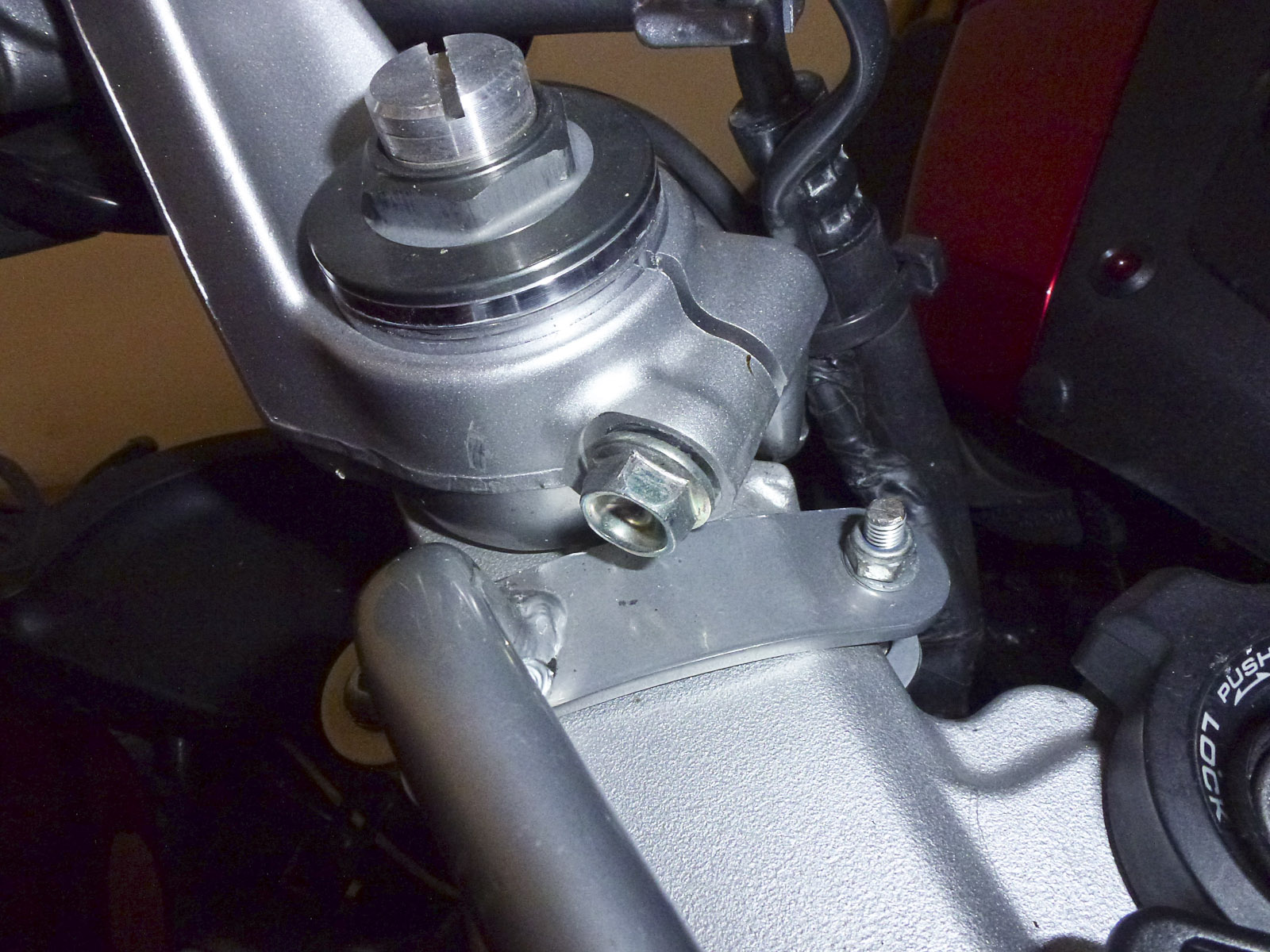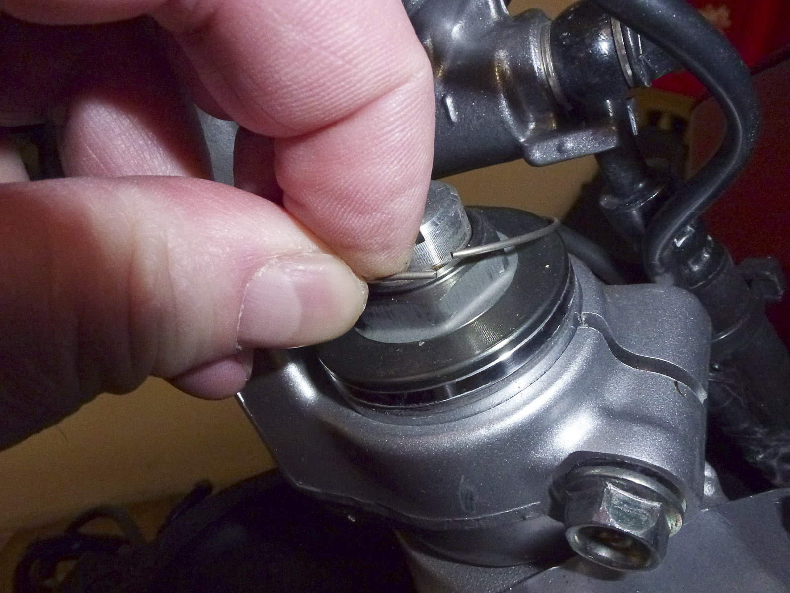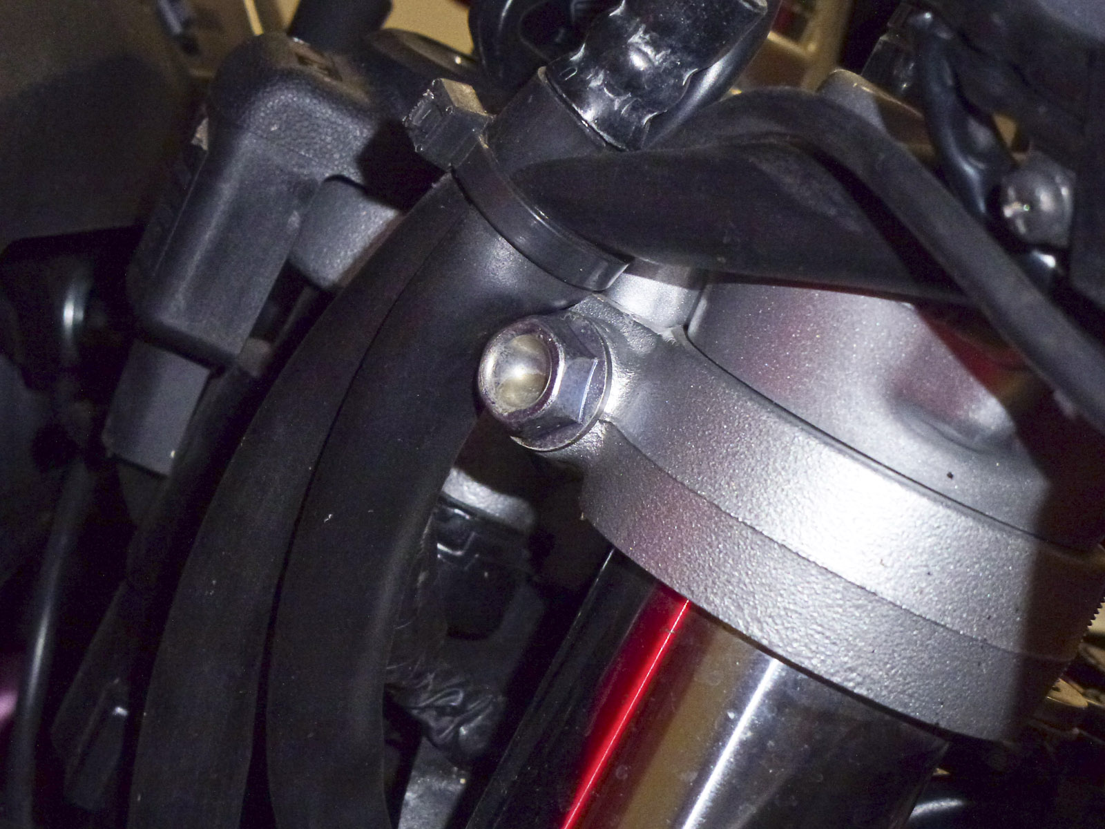 Jelikož VFR nemá vypouštěcí šroub a je nutno přední teleskopy demontovat, není to zase tak obtížné, jak se na první pohled zdá.Možná to ani není potřeba, ale doporučuji demontovatl obě boční kapoty. Pak vyšroubujte stavítka předpětí do horní polohy.