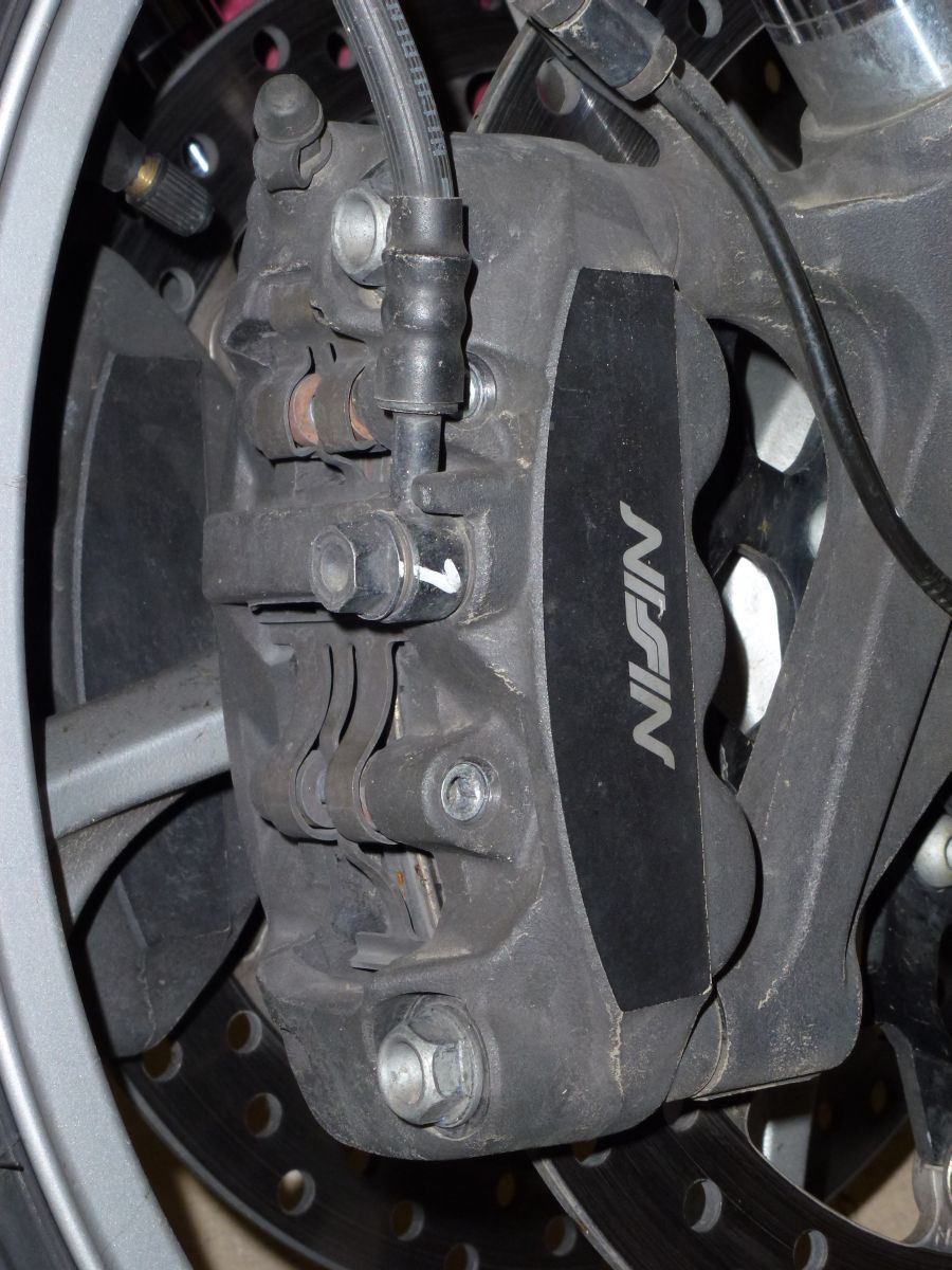 A to je ten největší rozdíl. VFR 1200 má totiž v každém třmenu desky dvoje. Malé, na které tlačí dva pístky a velké, na které tlačí 4 pístky.