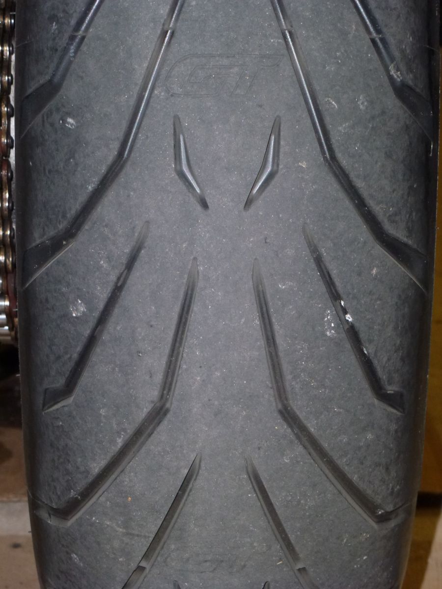 O 30% lepší výdrž se u mne opět nekonala. Bohužel zde chybí tradiční sjetí do mrtě, ale pneumatiky byly na značkách po 6238 km. Zbývalo 1 – 1,5 mm vzorku (pneumatika měla více sjetou levou stranu). Teoreticky by mohla najet 1000 – 1500 km. Vzhledem k plánované 1000 km cestě ve dvou s kufry a předpovědi deště jsem na takto sjeté gumě nechtěl jet. Předchozí Angel ST měla dráty proklatě nízko a prakticky se sjetým vzorkem se draly ven. Většinou takto sjeté pneumatiky dolítám kolem komína. Když je hezky a absence vzorku nevadí. Výdrží se tedy tato pneumatika nijak nevybočuje z řady. Předchůdce Angel ST mi vydržela 7400 km, GT je tedy na tom s výdrží zhruba stejně.