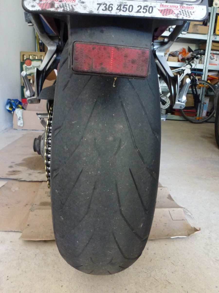 Prakticky během celé své životnosti si pneumatika udržela dobré vlastnosti, jen ke konci začala být při přechodu do náklonu mírně nestabilní. Což dělají všechny nerovnoměrně sjeté gumy.
