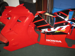 Mezitím jsem ještě řešil jednu věc, která mě trochu odrazovala, nebo spíš znejistěla při koupi - barva. Na stránkách obchodu totiž uváděli, že se jedná o barvu R-157 Italian Red, ve které se vyráběl právě americký Interceptor. Jenže moje VFR má barvu Victory Red. Takže jsem znovu usednul ke Googlu a začal hledat přímé srovnání těchto dvou barev, abych věděl, jak moc se odstíny liší. To se mi nakonec povedlo, na jistém diskuzním fóru jsem našel srovnání těchto barev/plastů z motorek VTR 1000 SP1 a RVT 1000 R (opět rozdíl evropská vs. americká verze). Tam jsem se dočetl, že Italian Red je mírně tmavší než Victory Red, k dispozici byla dokonce i fotka (přikládám). Z ní i z komentářů diskutujících jsem se dozvěděl, že rozdíl mezi barvami je patrný, ale nikterak výrazný.