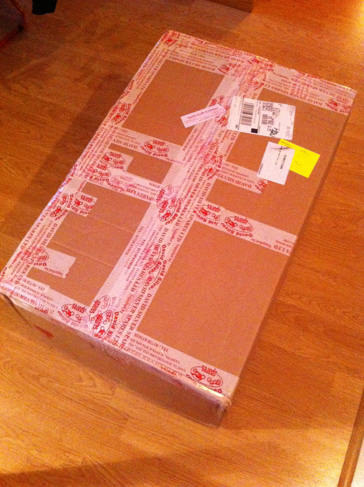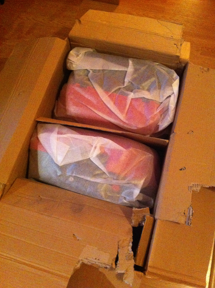 Objednávku jsem udělal 22.5.2014, hned 23.5. kufry odeslali a už 28.5. mi zásilku dovezl kurýr. Ať žije internet a spolehliví britští prodejci (mám takových dobrých zkušeností s rychlým doručením z Británie více)! Přišel mi poměrně kompaktní balík, viz fotky, jehož obsahem bylo to, co je na obrázku z eshopu výše. Tzn. kromě kufrů ještě kovové držáky / rámy, adaptér pro montáž k blatníku / držáku SPZ, sada šroubů a gumové krytky. Plus ke kufrům samotným dva klíče.