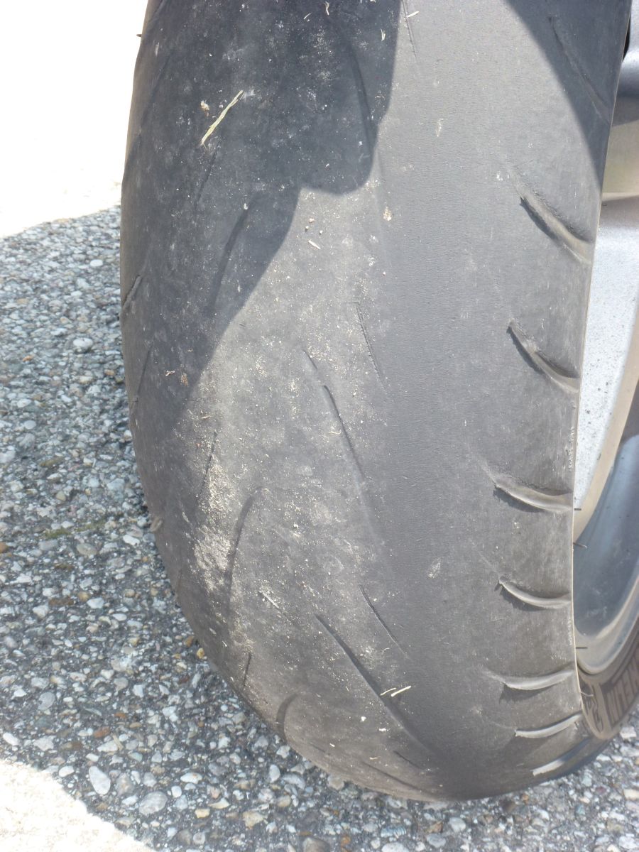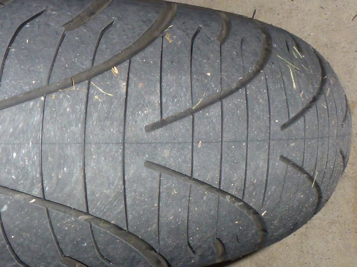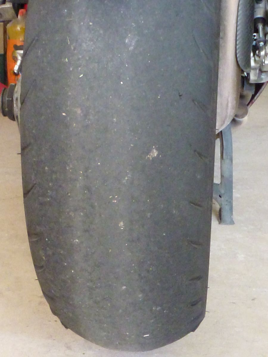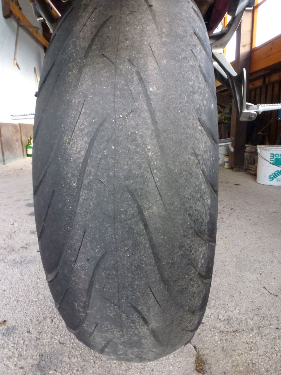 Pravidelnost opotřebení mohou dokladovat přiložené fotografie. Pneumatika opravdu po celou dobu své životnosti podávala konstantní výkon a díky tomu, že neměla hranu, neodskakovala v zatáčce jako svého času MPR2.