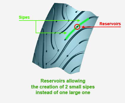 Díky esovitému tvaru lamel a jejich hloubce shodné s výškou dezénu je zajištěno pravidelné opotřebení pneumatiky po celou dobu její životnosti.