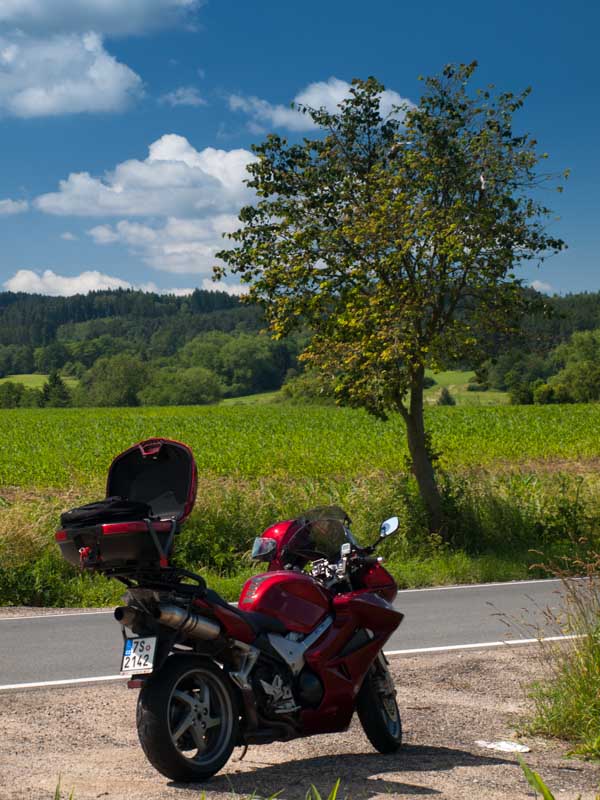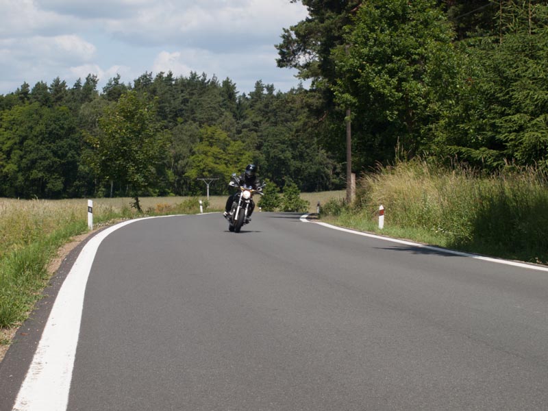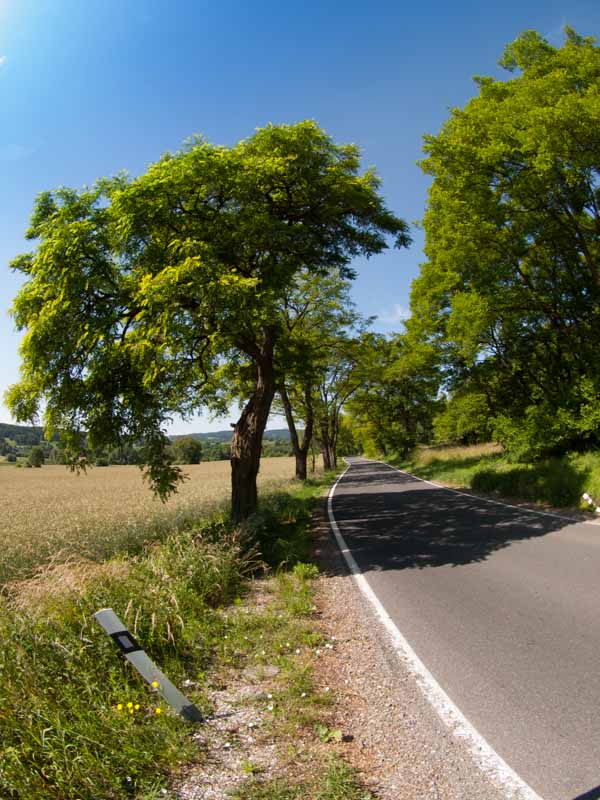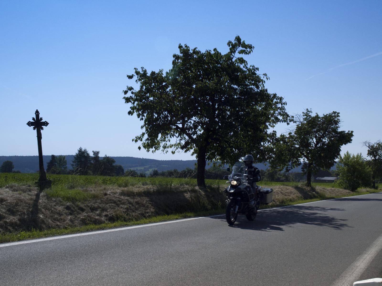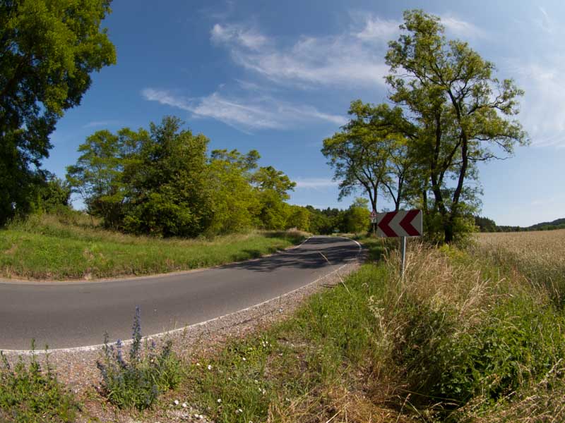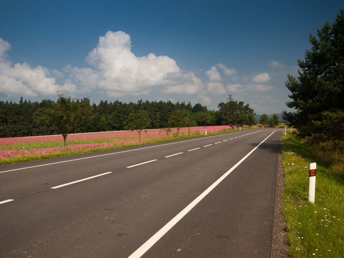 Za Vysokým Chlumcem následuje nudná rovinka až do Počepic, kde se silnice zvedne a až do Bratřejova potěší krásnými zatáčkami s výborným asfaltem.