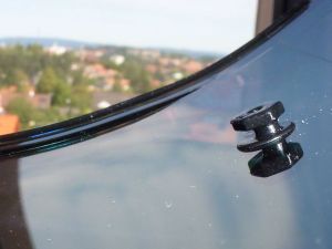 Shoei má na těch čudlících také výstupky, které indikují natočení excentru. Zkouším krajní polohy, ale to se pinlock poněkud vzpírá. Otáčím tedy piny tak napůl mezi původní netěsnící polohou a polohou "full inside". Pinlock zaskočí a připlácne se na plexi. Ani to nebolelo.