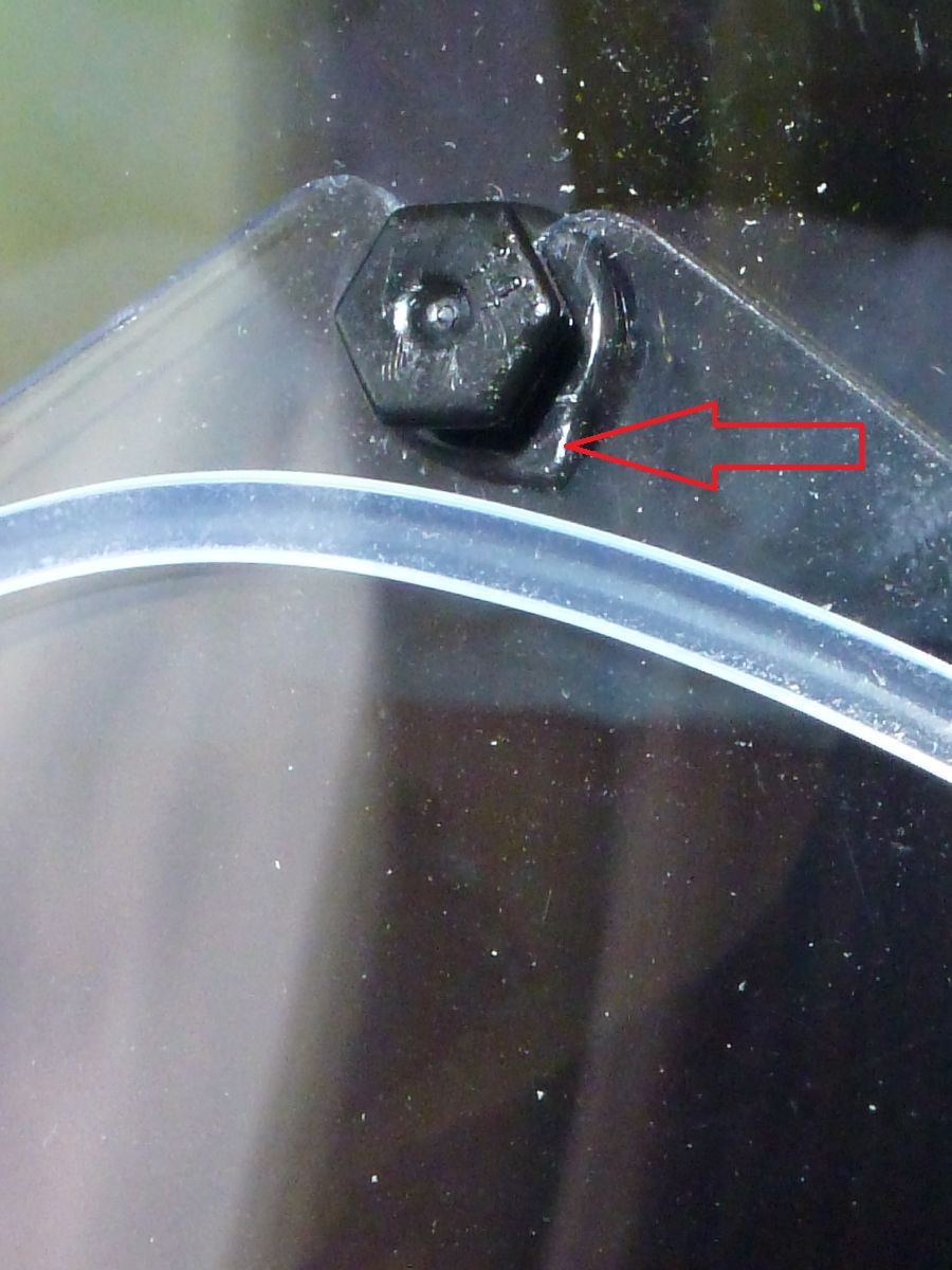 Když tak koukám na ty čudlíky, je zřejmé, že mají šestihrannou hlavici. To určitě nebude jen tak. Šestihran tam určitě bude, aby se s tím dalo otáčet. A když tak na to koukám, je to vlastně excentr. Když tím pootočím, oska se posune blíže středu a pinlock se bude muset připlácnout na plexi.