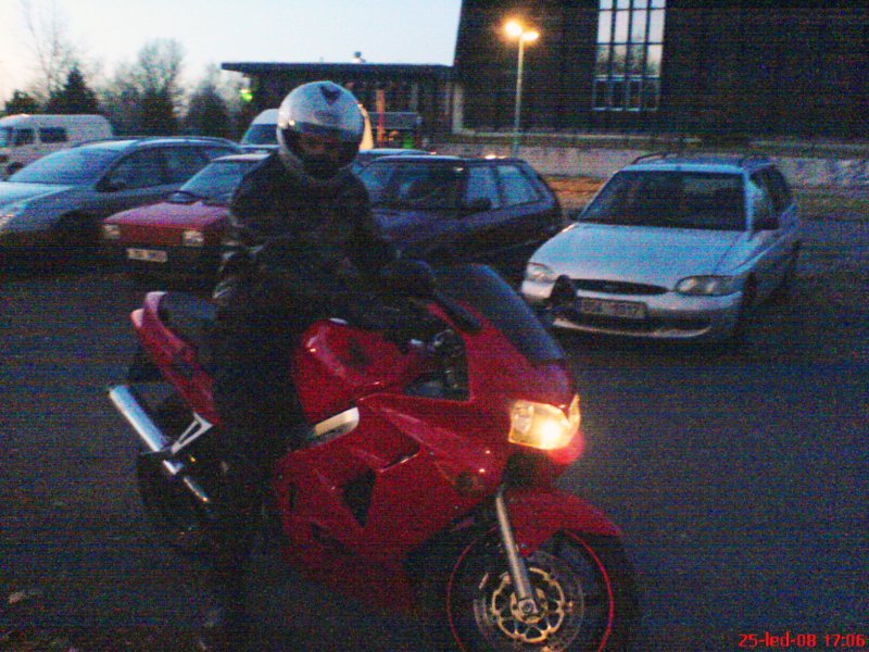 Dave:K dnešní vyjížďce se nemohu nevyjádřit. Zajeli jsme do servisu, vyvezli motorečku a ta, připravena na sezónu, s námi upalovala po excelentně suchých silničkách. Zatáčky jsem si užíval, nesnažil jsem se lámat motorku co nejvíce k zemi, ale užívat si ten pocit, že je půlka zimy a my jezdíme na veferce a ani nám není zima...Dojeli jsme do Lysé na benzínku dotankovat, to aby byla na příště veferka připravená na vyjížďku, byť jen krátkou, s plnou nádrží. No, jednoho motorkáře jsme cestou potkali, mávali na něj jak ztřeštění, ale s maximálním úsměvem na tváři. :-) V Lysé na benzince jsme potkali další dva motorkáře s motorkářkou, jeden se třásl, až málem vymlátil klávesnici na telefonu, ale oba byli vysmátý jak leča, protože si zajezdili. Dál už jsme jeli jen domů, uklidit veferku, ale už teď se těším na další společnou jízdu v jedné stopě.PS: pro zasmání: Doma jsem naházel věci do kufru, taťkovi dal klíče od fábky, aby nás odvezl do servisu. Víte co bylo dobré? viz 1. foto - wingrack jsem sundal už v listopadu a nasadil kryt na sedlo. kryt se sundal, aby si Mája mohla alespoň sednout, ale věci z kufru putovaly do kapes, holt, neměl jsem ho kam dát, ta paměť...