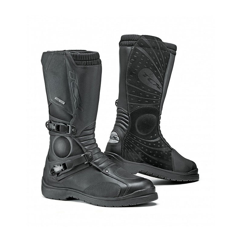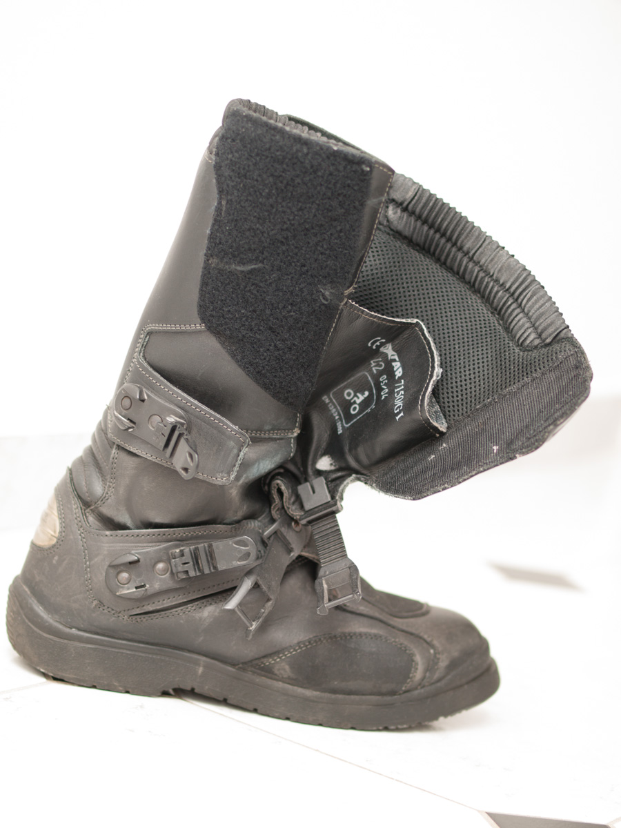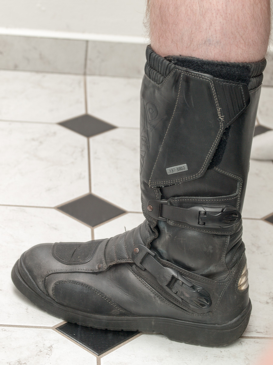 Bota je kožená, s GoreTexovou membránou, výška 35 cm. Horní část se zapíná na suchý zip, spodní část na dvě nastavitelné plastové přezky. Bota je vodotěsná téměř v celé své výšce. Je koncipovaná spíše na enduro než na cestovní motorku. Ale prakticky to ničemu nevadí.