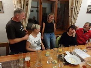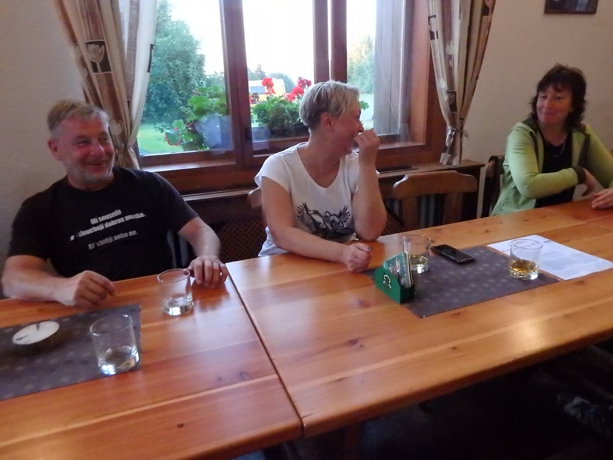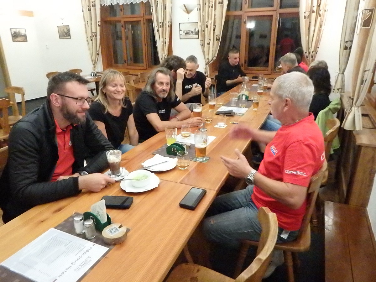 Po společné večeři jsem objednal společný přípitek na zdar našeho setkání. Po tomto následovala během pár hodin doslova chumelenice panáků, takže došlo k nemilé situaci. Jack Daniels došel. Došel nebo raději odešel? To už bylo asi všem v tu chvíli jedno. Zábava se po večeři rozjela a nabrala krom klasických témat i nečekané azimuty. Třeba téma nošení spodního prádla u přítomných dam či pánů. No napadlo by vás, že tohle budete řešit na motoslezině? Ale sranda u toho byla, ne že ne. Jeden okamžik mne napadlo jaký bude po takovém večeru bude ráno stav mužstva, no ale k mé nemalé radosti se ukázalo, že Vefráci mají tuhý kořen.