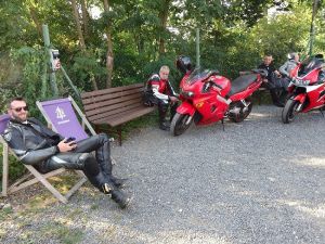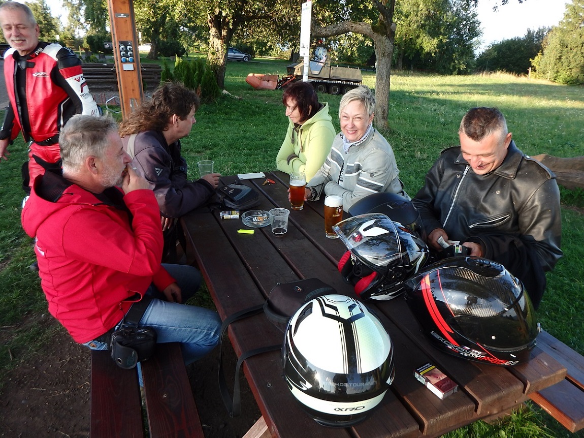 Zbýval ještě nějaký čas a Dave navrhl ještě návštěvu nejnižší rozhledny největšího českého génia všech dob Járy Cimrmana. Je to skoro při cestě a zajížďka nebude veliká. Jenže z tohoto plánu nakonec sešlo a jelo se rovnou na chatu. Jarák s Pavlou, Norbert a Vehrvolf už dojeli před námi a seděli venku u kiosku před chatou. Rituálně jsem si chtěl sypat popel na hlavu, ale nenalezl jsem poblíž žádné ohniště.