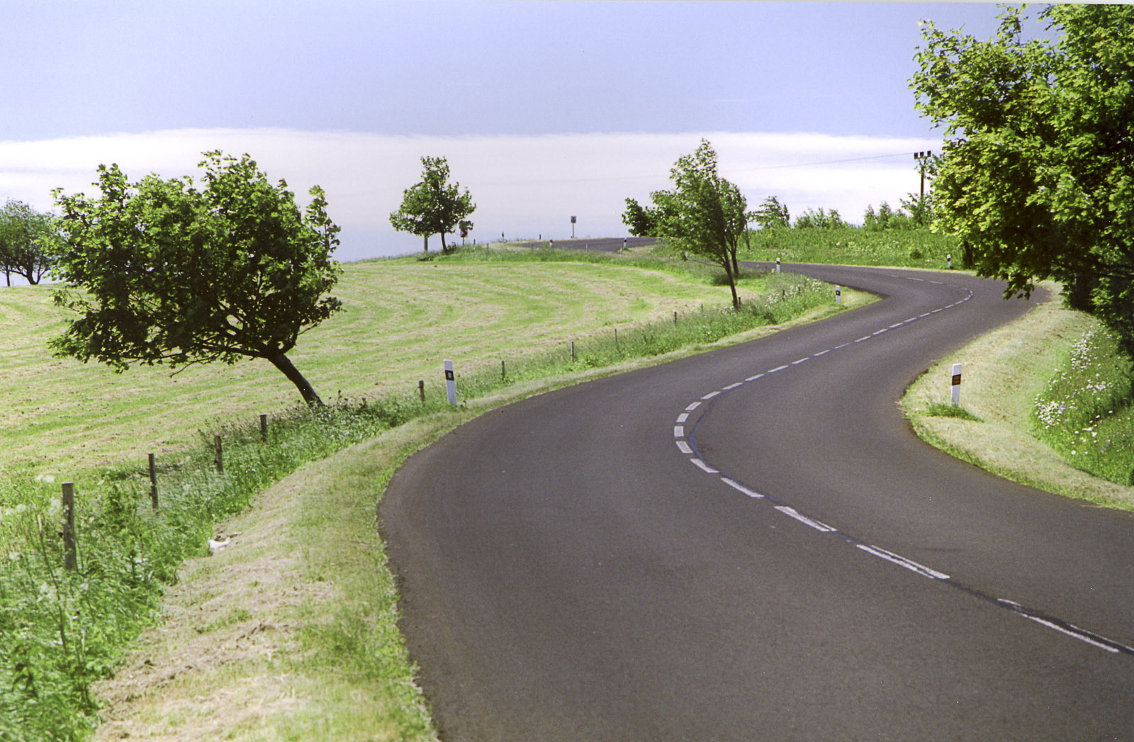 Konec pauzy. Sedláme stroje a hned za přechodem odbočujeme vpravo po silnici S216. Silnice se krásně klikatí údolím potoka, provoz minimální, jen tu a tam dojíždíme nějaké auta, které nás však ochotně pouštějí před sebe. Snad ten asfalt by mohl být lepší. I když do středočeských tankodromů to má naštěstí pořád ještě daleko.