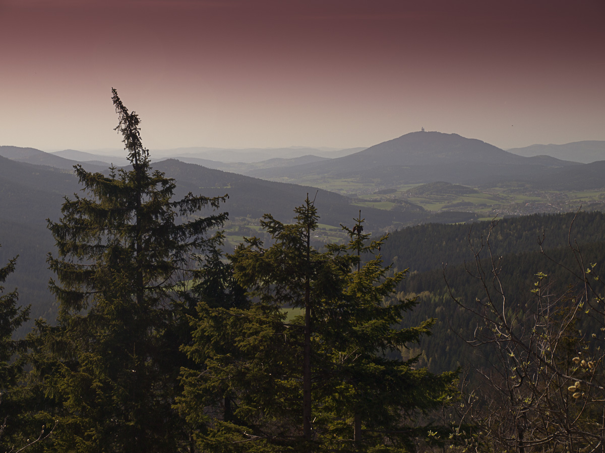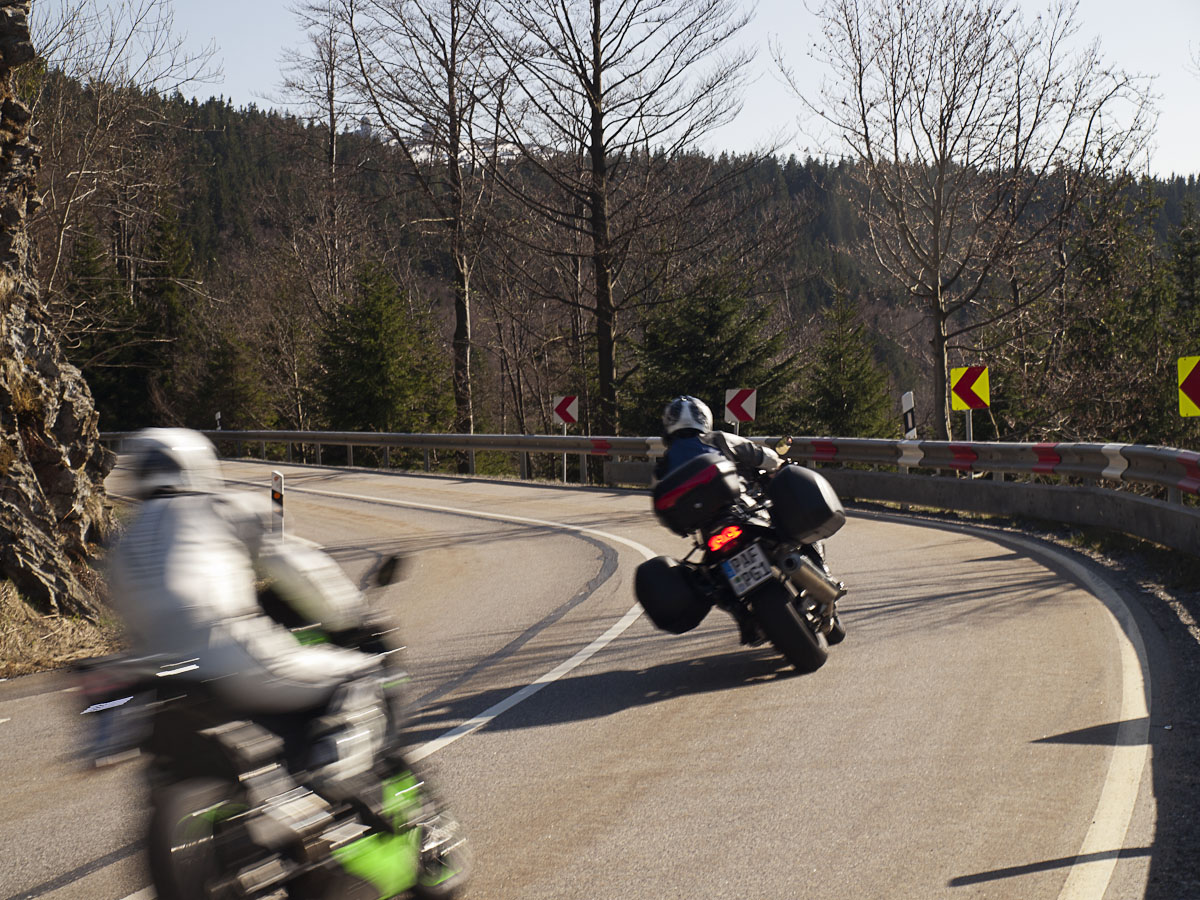 Šumava jaro 2012Dlouho se nezdržujeme. Je pozdní odpoledne a ještě chceme stihnout to kolečko. Takže zpátky přes čáru do Bayerisch Eisenstein a pak hned nahoru na Neuhütte a po ST2154 na Arrach, Arnbruck, Bodenmais zpátky do kopců po ST2136 a ST2137 kolem Arbersee a Grosse Arberu zpátky na Bayerisch Eisenstein a Železnou Rudu. Celé kolečko se nám podařilo zajet vzhledem k nulovému provozu poměrně svižně. O víkendech tady bývá docela velká koncentrace motorek, aut a karavanů. Jednak je to oblíbená turistická destinace a pro motorkáře něco jako Dubá nebo Buchláky.