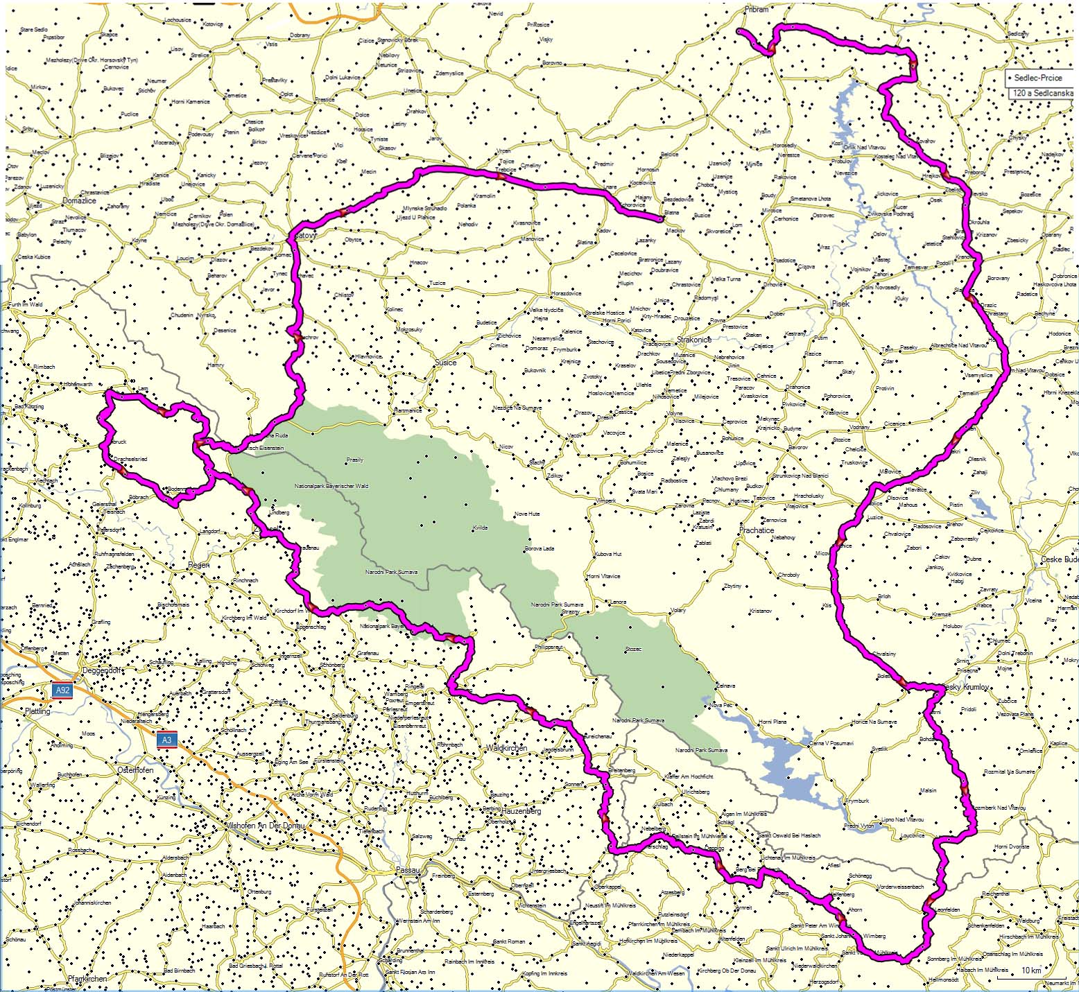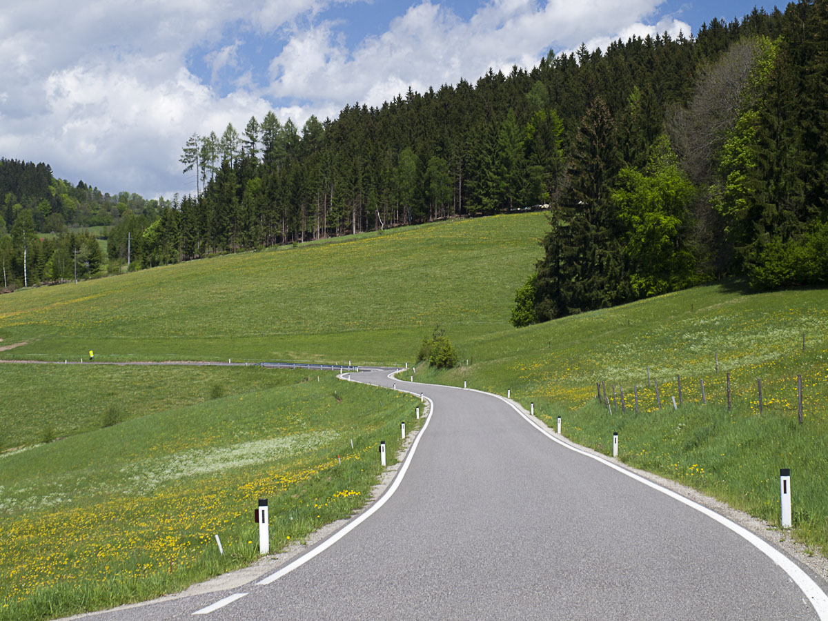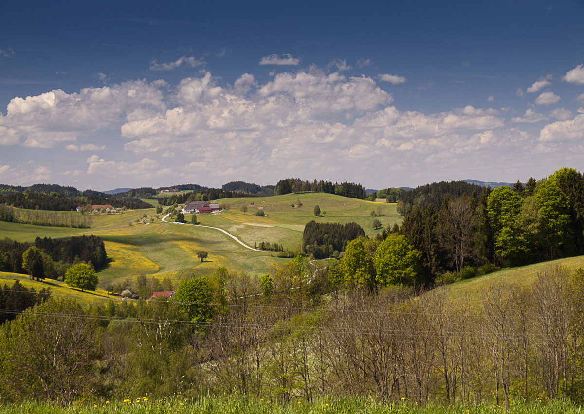 Šumava jaro 2012Ve Studánkách překročíme hranici a po B126 jedeme na Bad Leonfelden a Zwettl an der Rodl. Zde B126 opouštíme a zabočíme doprava na Zwettler Strasse směr Waxenberg, Helfenberg. Touto zatáčkovitou silničkou, která sice neoplývá prvotřídním asfaltem (ale také to není tankodrom) objedeme poměrně nudný úsek B38 mezi Helfenbergem a Bad Leonfelden. Odměnou je nám krajina s pěknými výhledy.