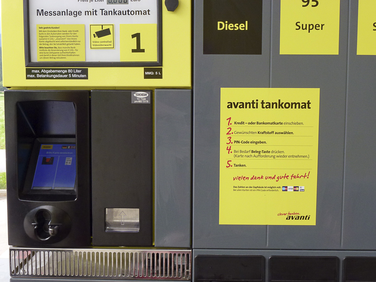 Odjíždíme směrem na Mariazell a odtud po silnici B24 na Wildalpen. Silnice se vine údolím, samá zatáčka. Povrch se střídá. Opravený, perfektní asfalt s českou okreskou (ale naštěstí ne Středočeskou). V jednom úseku zrovna potkáváme silničáře a frézu. Tak aspoň něco opravují. U nás by to takhle zůstalo dalších dvacet let. Pak to vezmeme nahoru na Altenmarkt bei Sankt Gallen. Tady už jsme jeli. Místní silnice má občas slabší povrch, ale chystá se její uzavírka a pokud bude opravena, bude to krásná silnička. Následně přes Spittal am Phyrn sjedeme na Linz. Začíná krápat, ale naštěstí nic dramatického. Za Liezenem odbičíme na B145 na Obertraun. Děláme ještě malou odbočku z bundesky na místní zatáčkovitou komunikaci. Koukám směrem k Dachsteinu na kupící se mraky a říkám, že asi zmokneme. No, Pája si vtipně nechala nepromok na pokoji. Vzpomínám na brňáky z mého prvního výletu. Jetli opravdu luchne, tak to se má holka na co těšit… Cestou beru benzín. Shellku na křižovatce jsem vynechal kvůli hustému provozu, tak koukám, co kde bude k mání nebo jestli budu muset vzít benzín jako minule v Bad Aussee. Po pravé straně je samoobslužná pumpa Avanti. Tak to jdu vyzkoušet. Naštěstí se jedná o lepší systém, než je rozšířený v Itálii, kde to jednak nebere karty a když hotovost, pak si musíte předplatit množství, které následně buď odeberete nebo ne. Což je váš problém a peníze vám nikdo nevrátí. Tady vložíte kartu, zadáte PIN, systém si ověří, že na účtu něco máte, kartu vyndáte a naberete si, kolik potřebujete. A to je všechno. Transakce už proběhne bez karty. Protože si vedu evidenci spotřeby, chtěl jsem účet. Což teoreticky není problém. Vložíte kartu, zadáte PIN a systém vám nabídne poslední transakce (možná i historii, to nevím, bral jsem jen jednou). Vyberete si, kterou chcete a stojan vám vytiskne účet. Mně nevytiskl nic, protože došel papír. Až po chvíli mne napadlo, že transakce budou asi uloženy někde na serveru a tím pádem by to mělo jít i z jiného stojanu. Což opravdu fungovalo.