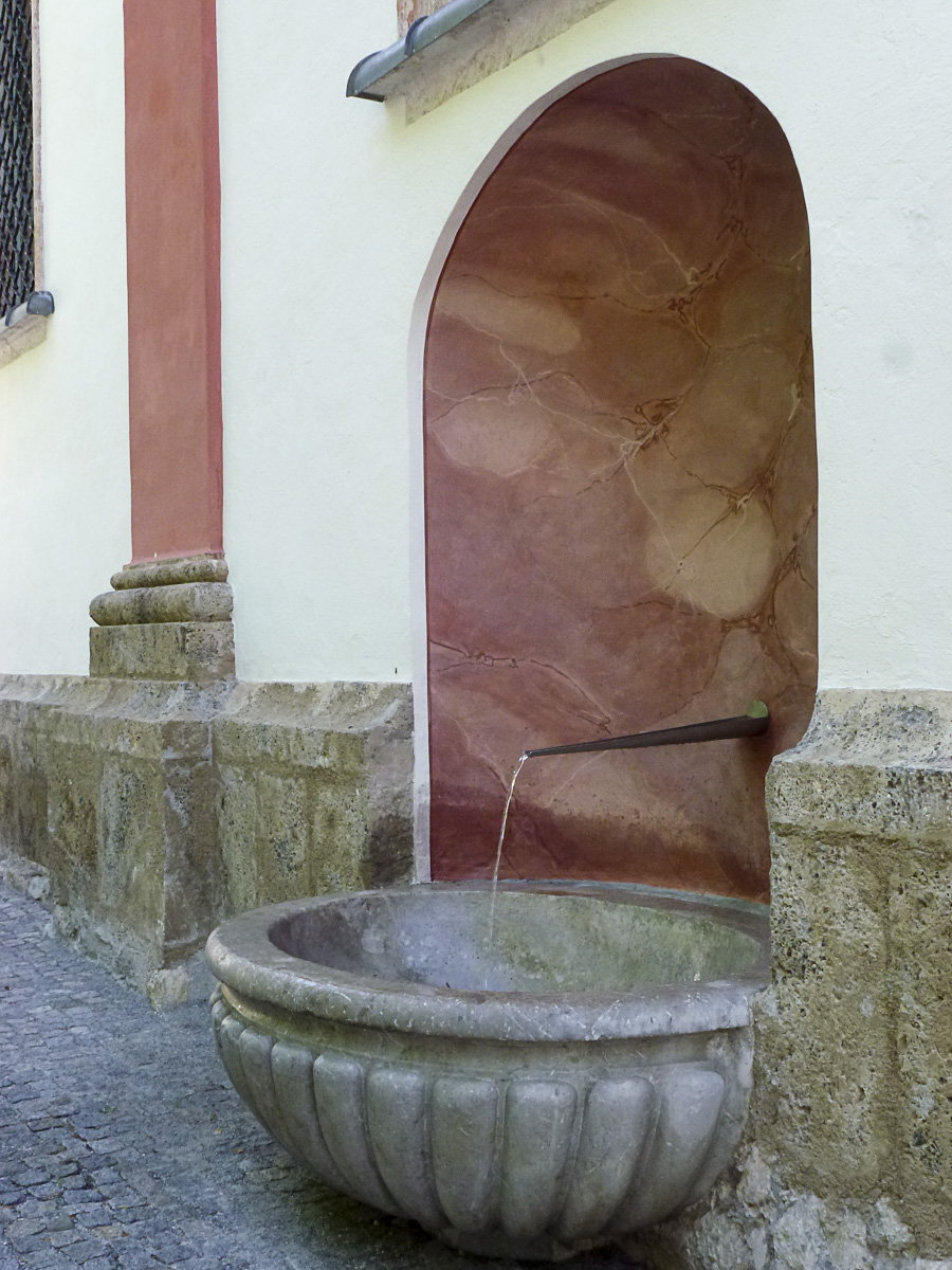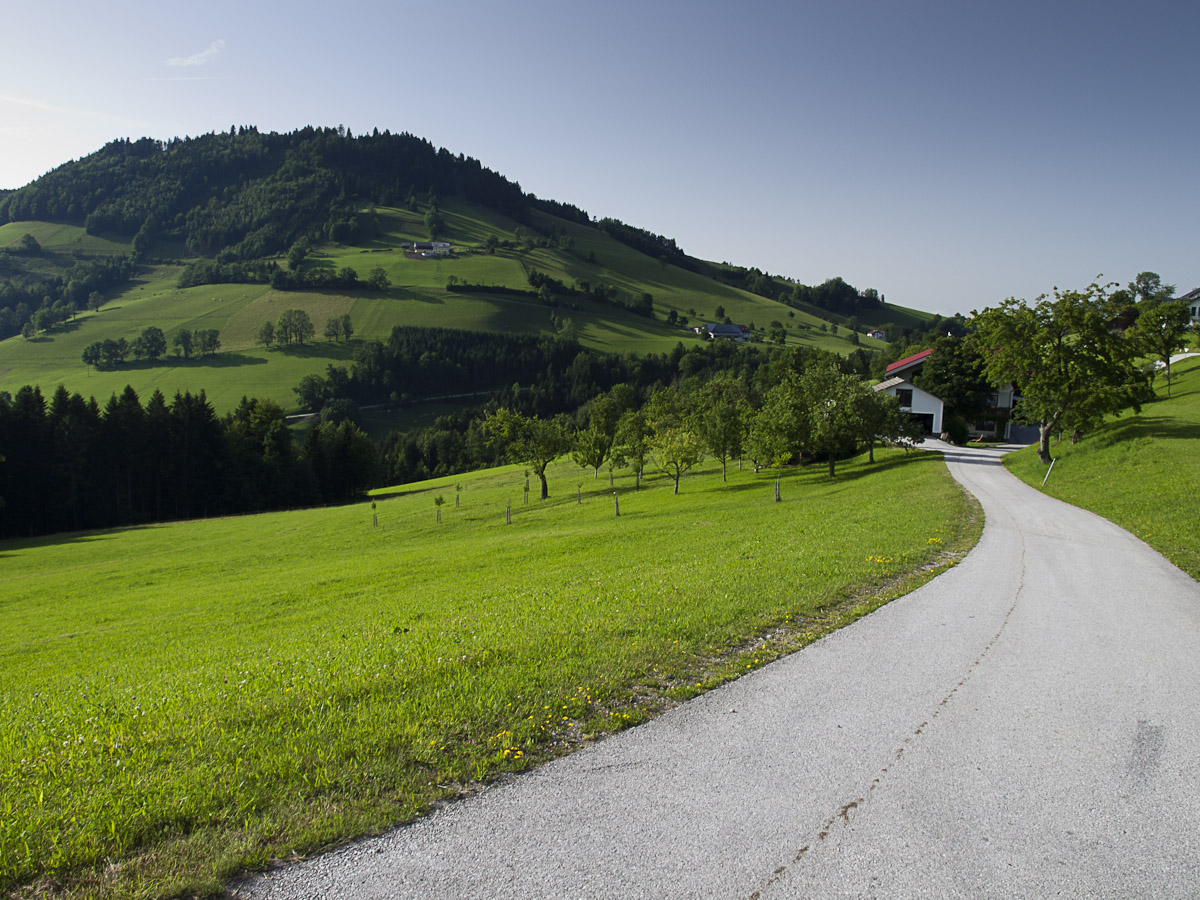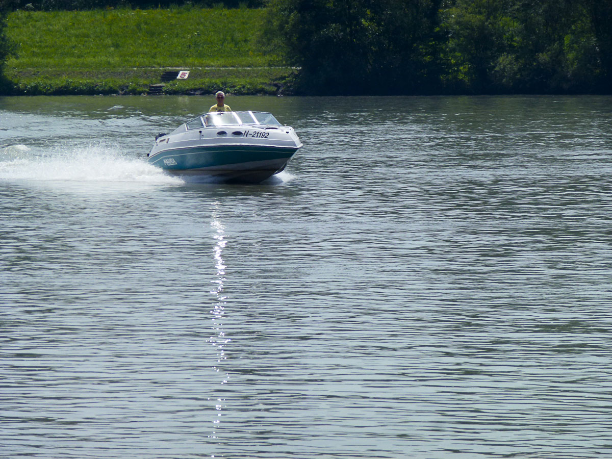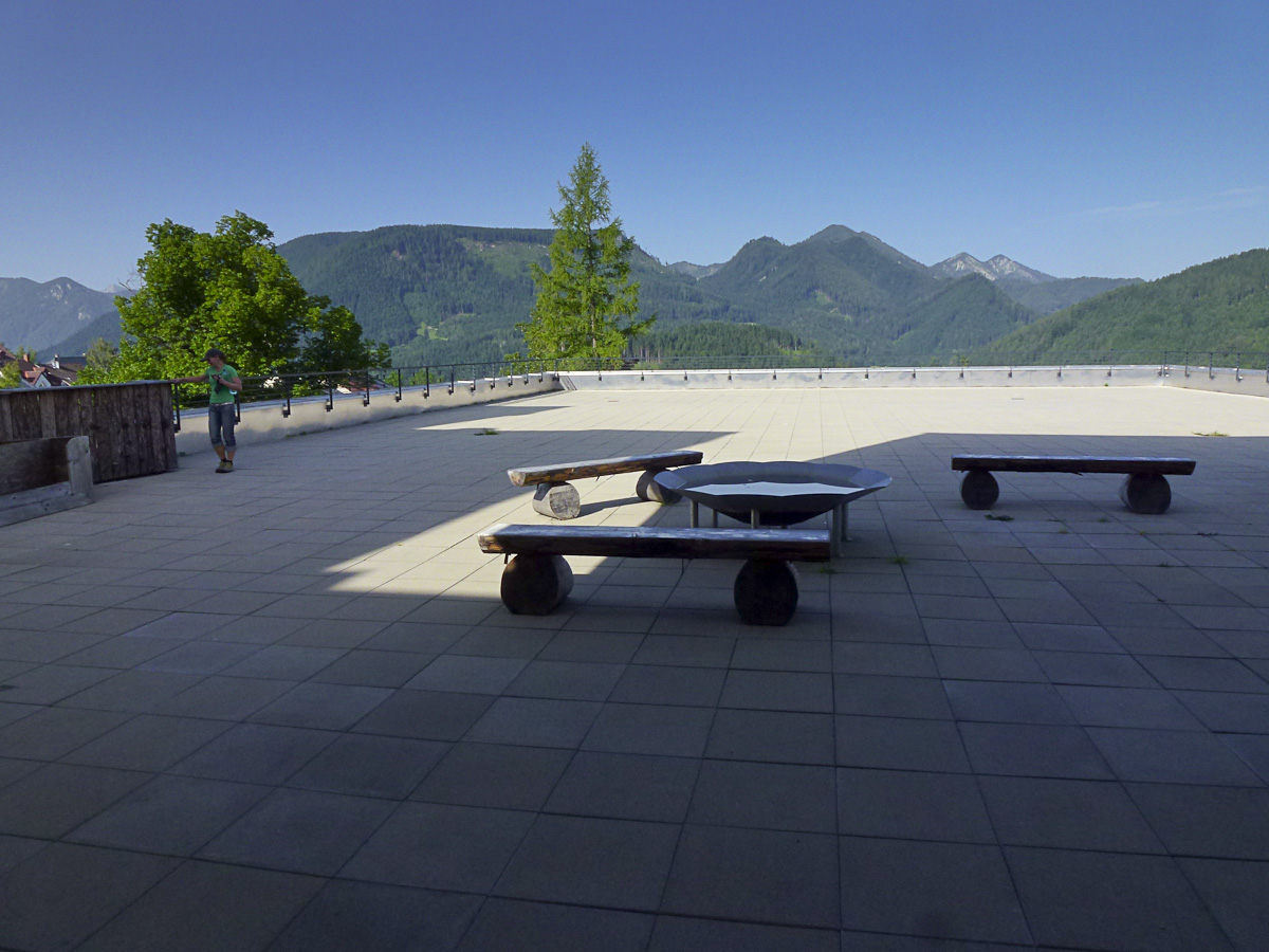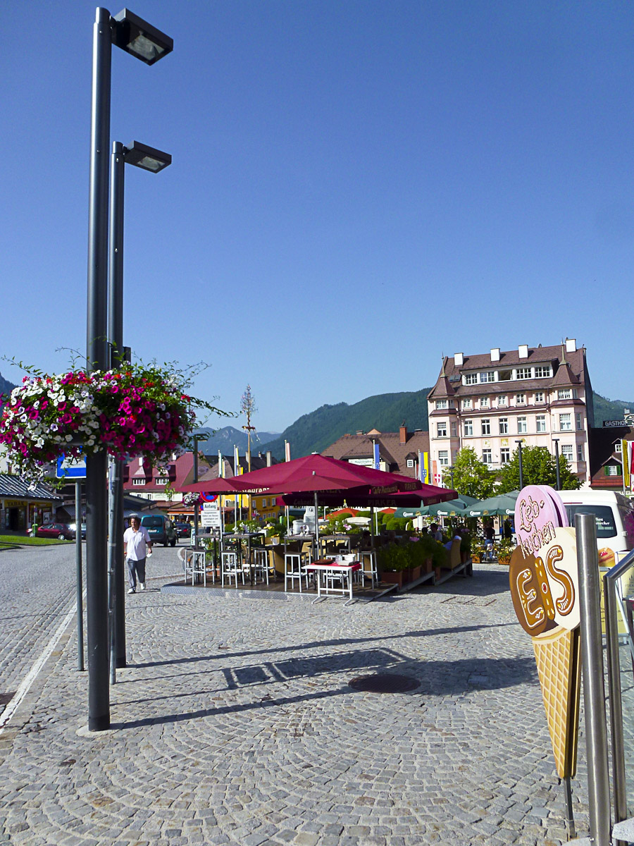 Na parkovišti se znova převlékáme. Začíná být docela vedro. Kolem jezera máme štěstí na prázdnou silnici, což si chci užít, takže nestavím ani na fotky. Odbočujeme na již dobře známou B166, po které dojedeme až na křižovatku s B99. Tady stavíme u pěkné hospody na oběd. Je vedro a máme docela žízeň. Obsluha poněkud vázne a když se slečna objeví, pak dlouho trvá, než pochopím, co myslí, že mají pouze „eis und appfelstrudel“. Prostě nevařijó. No to mne docela mrzí, že jsem si objednal ty dvě nealko piva. Mezitím přijíždí dva páry ve dvou Ferrari se švýcarskýma značkama. Staví vedle naší motorky. Jenže motorka se vejde všude, zatímco Ferrari už zasahuje do autobusové zastávky. S tím má zřejmě vychovaný Švýcar mentální problém, takže po krátké diskusi s druhým řidičem uskuteční rozhodnutí auto přeparkovat. Startér točí zhruba 20 sekund a nic. Chvíli pauza a po dalších pěti sekundách startér přemluví motor k hlubokému zaburácení. Holt Italská mašina. Dopíjím a Pája bojuje se svým půllitrem. Ten nezvládá dopít, což na druhou stranu nebrání tomu, aby se hihňala kde jaké hovadině. „Já jsem se asi opila“ prohlásí, když se drápe na motorku a řehtá se, jako by to byl vtip roku. Tak jenom doufám, že ji někde cestou nevytrousím.