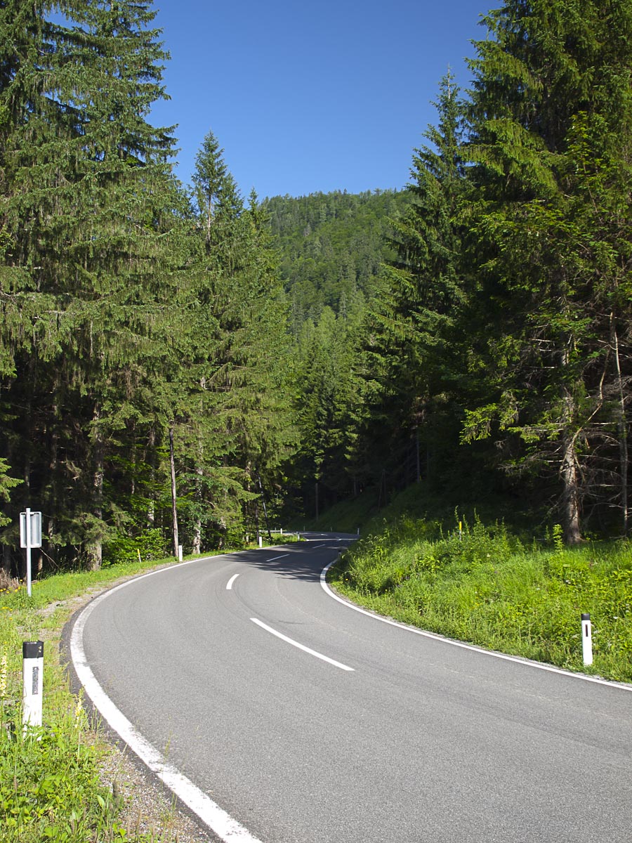 Ačkoli okolí Mariazell nenabízí vyloženě vysokohorské prostředí s atraktivními výhledy z vysoce položených průsmyků, je to výborná lokalita pro ježdění. Nepřeberné množství zatáček, kdy motorka jede prakticky pořád v náklonu a povětšinou dobrý asfalt, to je kombinace, díky které se vrátíte s gumou olítanou do krajů a vzorkem uprostřed. Už chápu, proč jezdí „ jen tak si zajezdit do Mariazell“.