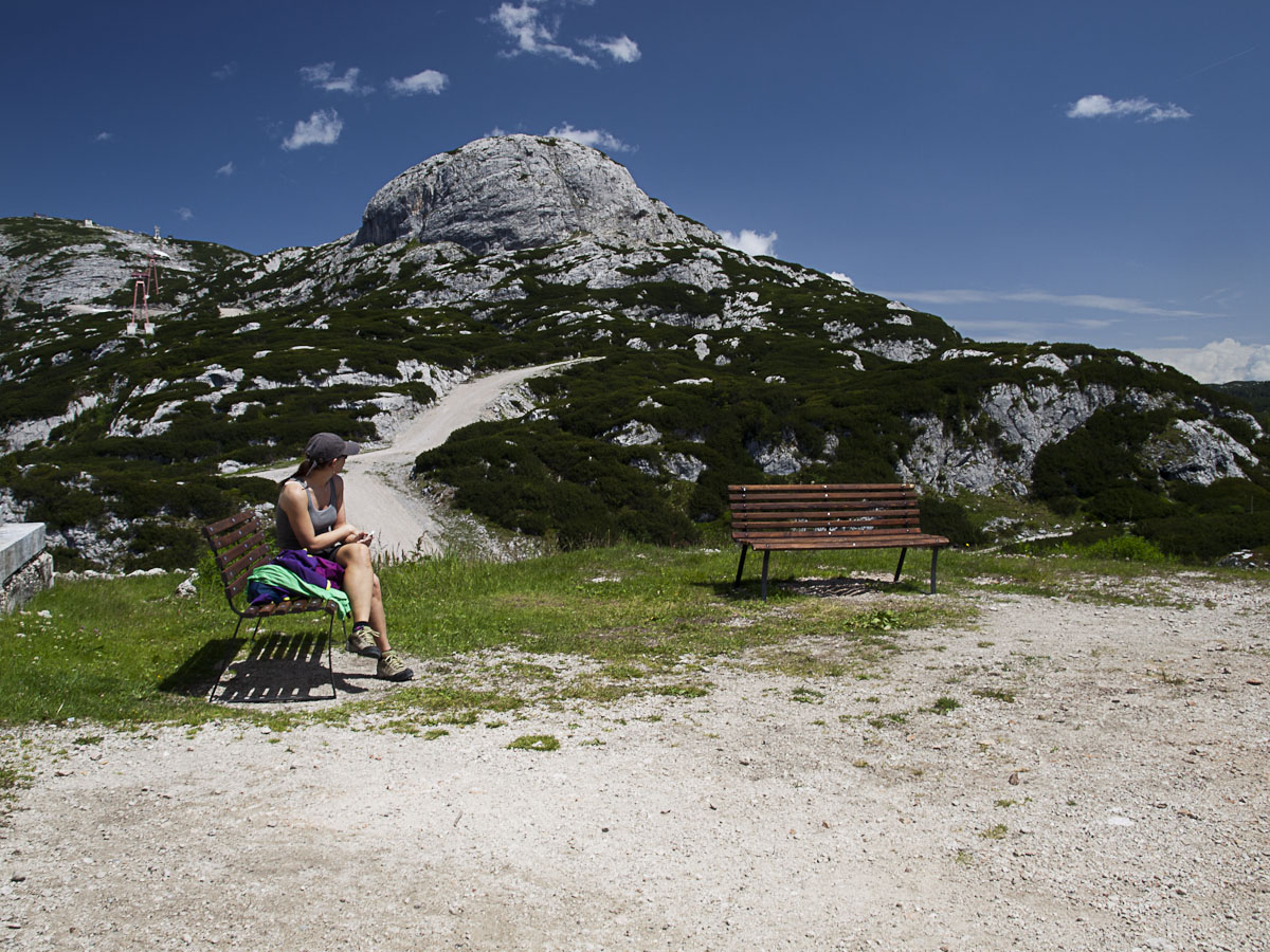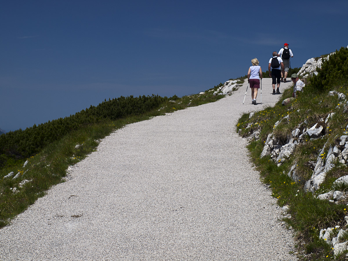Nahoře nás vítá sluníčko, byť není takové to typické fotografické ažůro a obzor je v oparu, ale čekal jsem to horší. Jdeme se podívat na rozhlednu „Pět prstů“. Navzdory vysokohorskému terénu, je to tady přizpůsobené joudům v teniskách a když by na to přišlo, i blondýna na podpatkách by to zvládla, jelikož chodníčky jsou zpevněné a zarovnané směsí štěrku s asfaltem nebo něčím takovým. Od lanovky k vyhlídce je to podle ukazatele 30 minut chůze, což odpovídá opravdu vlažnému tempu včetně zastávek na focení.