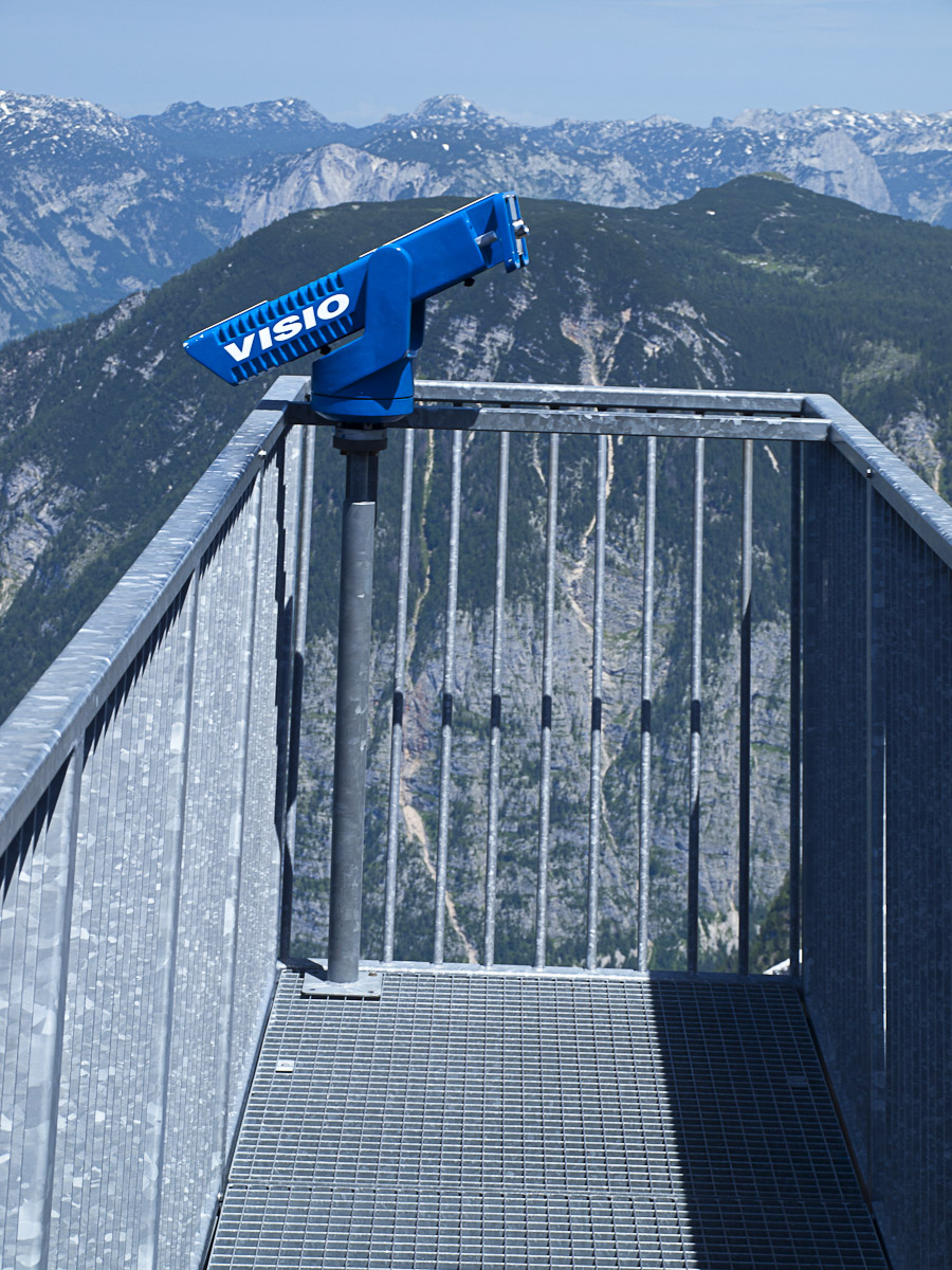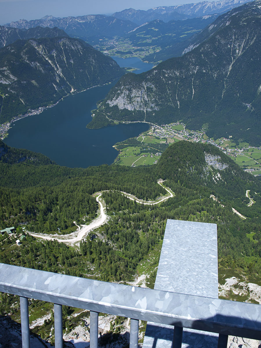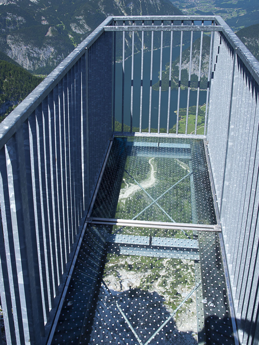 Vlastní vyhlídka je ocelová plošina trčící do prostoru. Její název je odvozen od pěti lávek, po kterých se můžete projít. Tedy, prakticky čtyř lávek, protože třetí lávka, která symbolizuje svobodu a volnost hor je jakýmsi skokanským prknem, kde je vstup omezen zábradlím a výstražnou cedulí. Zábradlí však nemá žádné prvky, ztěžující přístup a’la Nuselský most a pro případné zájemce si myslím představuje značně stylovější volbu než jmenovaná pražská dopravní stavba včetně ekologické likvidace ostatků, o které by se jistě rádi postarali místní draví ptáci na rozdíl od neřádu, který po sebevrazích zůstává pod mostem. První lávka je vybavena rámem od obrazu, ve kterém si můžete zvěčnit Hallstadt, druhá má prosklenou podlahu, takže se můžete projít nad propastí, Pátá lávka je vybavena dalekohledem, třetí je průhledná, čtvrtá už nevím, asi na ní nic zvláštního nebylo a na páté lávce máte k dispozici dalekohled.