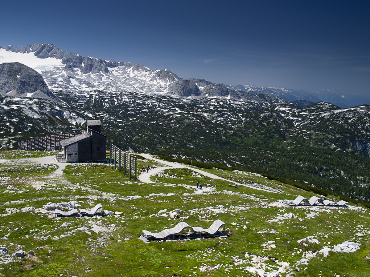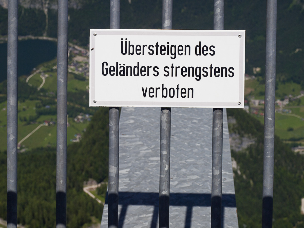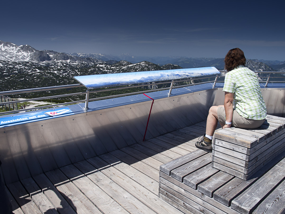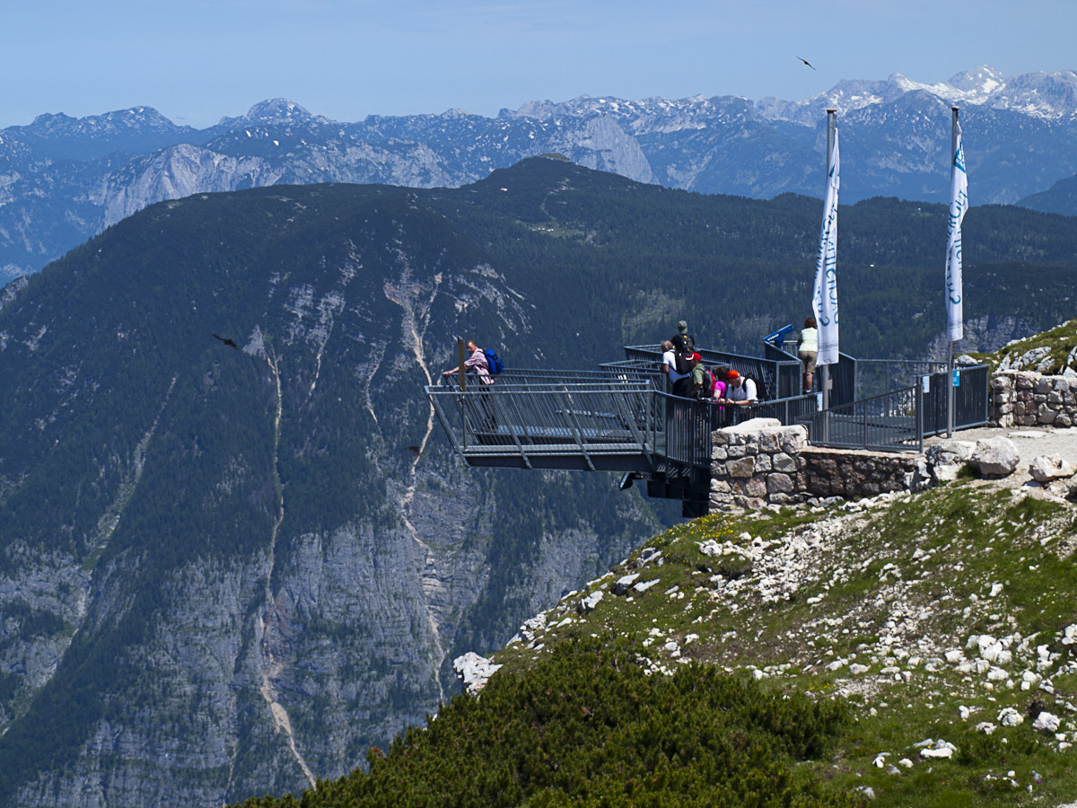 Vlastní vyhlídka je ocelová plošina trčící do prostoru. Její název je odvozen od pěti lávek, po kterých se můžete projít. Tedy, prakticky čtyř lávek, protože třetí lávka, která symbolizuje svobodu a volnost hor je jakýmsi skokanským prknem, kde je vstup omezen zábradlím a výstražnou cedulí. Zábradlí však nemá žádné prvky, ztěžující přístup a’la Nuselský most a pro případné zájemce si myslím představuje značně stylovější volbu než jmenovaná pražská dopravní stavba včetně ekologické likvidace ostatků, o které by se jistě rádi postarali místní draví ptáci na rozdíl od neřádu, který po sebevrazích zůstává pod mostem. První lávka je vybavena rámem od obrazu, ve kterém si můžete zvěčnit Hallstadt, druhá má prosklenou podlahu, takže se můžete projít nad propastí, Pátá lávka je vybavena dalekohledem, třetí je průhledná, čtvrtá už nevím, asi na ní nic zvláštního nebylo a na páté lávce máte k dispozici dalekohled.