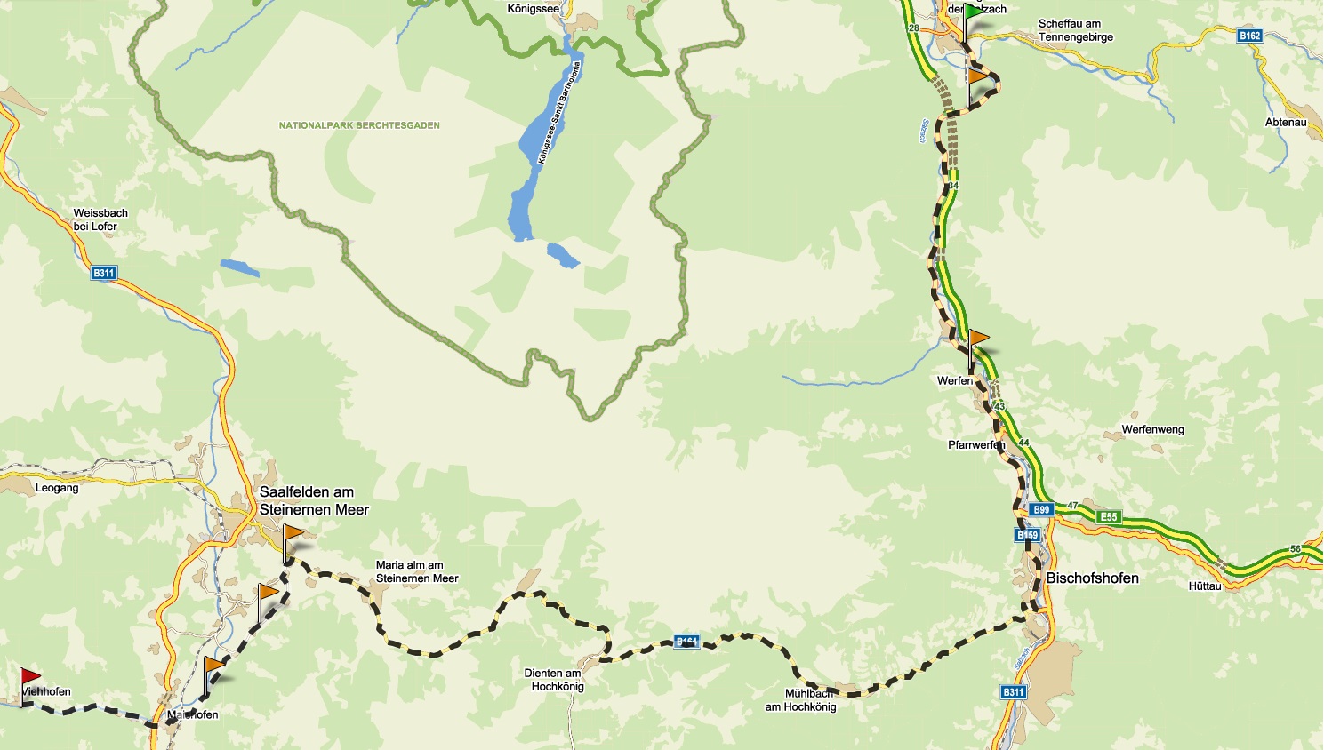 Scheffau am Tennengebirge – Bischofshofen – Dienten Sattel – Maria alm am Steinernen Meer – Maishofen – Viehhofen (77 km)