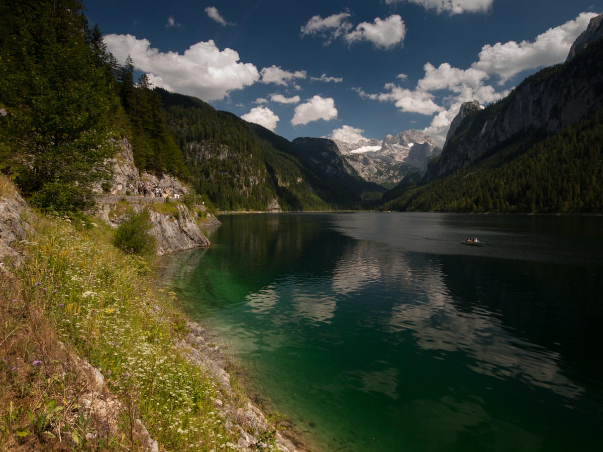 Slunce pálí jako prase a Attersee láká ke koupání. Příště musíme vzít plavky. Attersee – Bad Ischl klasika číslo 2. Pak nudná spojovačka k Hallstätersee a další povinná etapa směr Gossau. Tady děláme odbočku ke Gosausee. Helmy, bundy házíme na mašiny a jdeme se projít kousek kolem jezera. Lidí je taky jak na Václaváku. Polovina jsou Turci nebo nějací muslimové. Mazec. Za chvíli budeme v Evropě cizinci. Z Gossau pokračujeme po B166. Cílem je Bischofshofen. Je možné jet horem po B162 nebo spodem po B166. Spodem jezdím skoro pořád, takže změna a B162. Spodní trasa je hezčí.