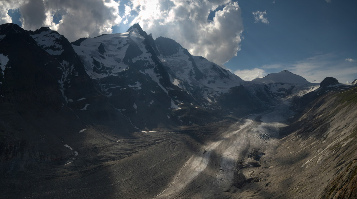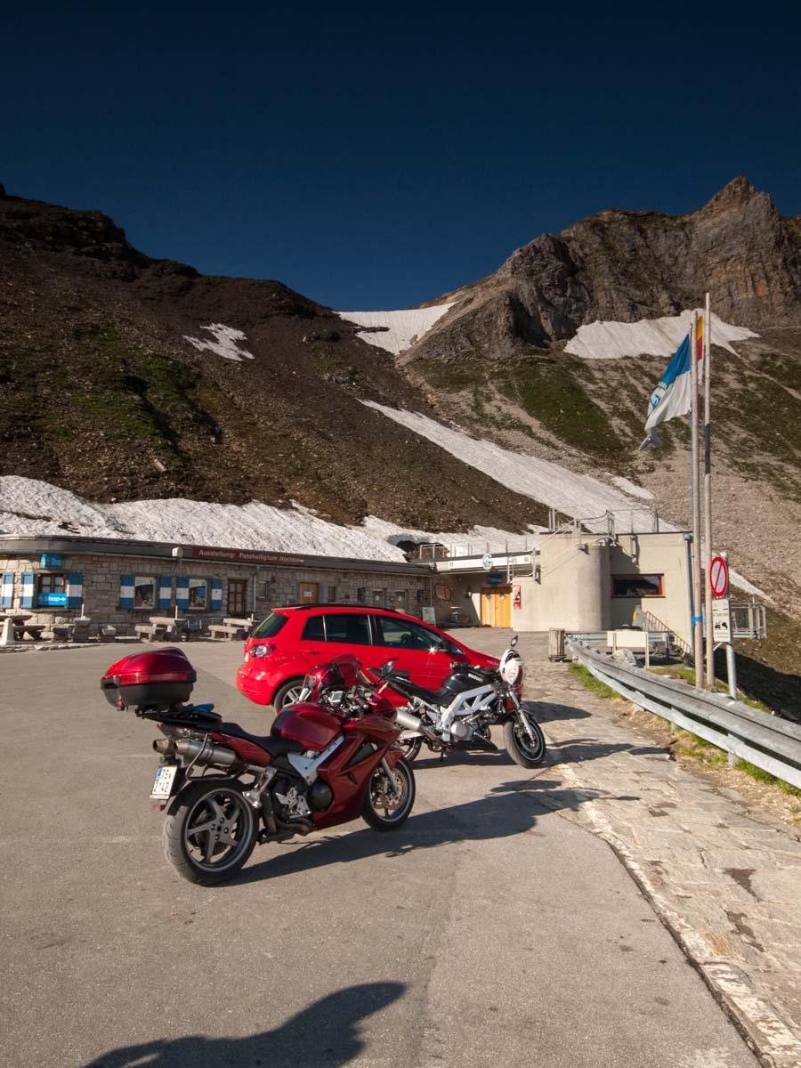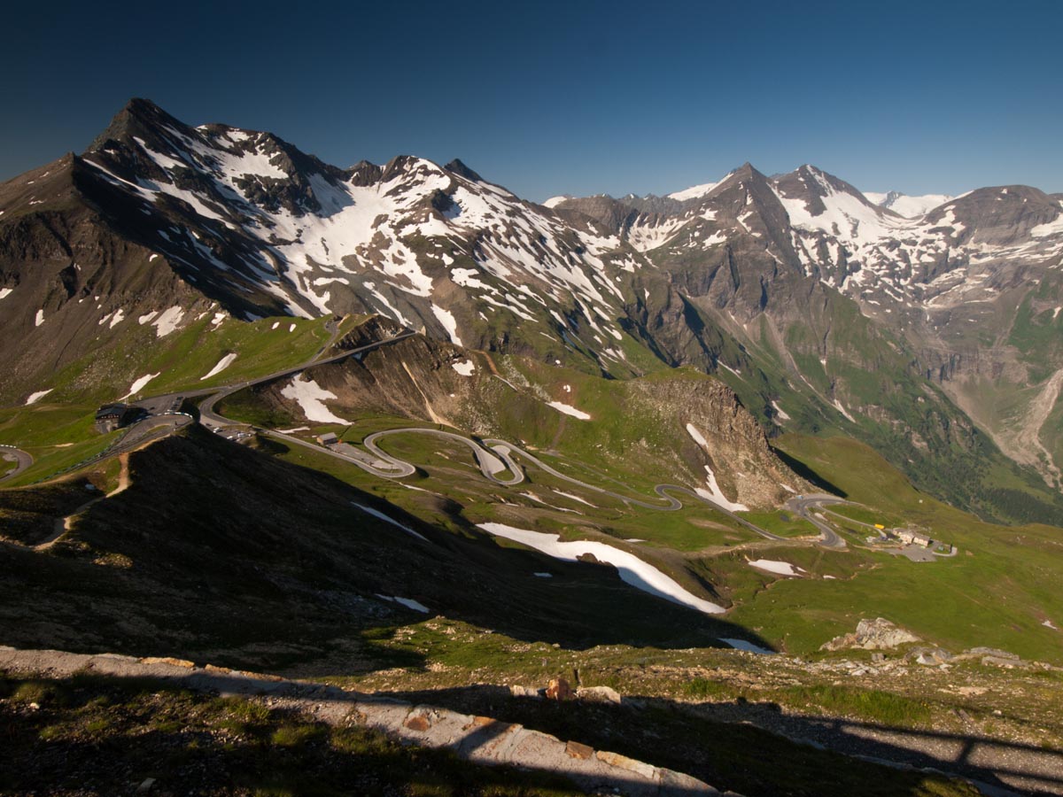 Ráno vydatná Embacherovská snídaně a za ranního chladu míříme na Glockner. V údolích se válí lehká mlha, nebe je blankytně modré. Zatím to vypadá nadějně. Mýtnice a obligátní zatáčky. Marek je tady poprvé, oči má navrch hlavy. Nejraději by to všechno fotil zepředu, zezadu, shora, zdola. Znám to. Taky se mi ta silnice líbí. Pořád. Provoz je zatím malý, zanedlouho parkujeme na Edelweisspitze. Nezdržíme se dlouho. Na focení bude dost času cestou zpátky. Cestou stavíme ještě na pár místech.