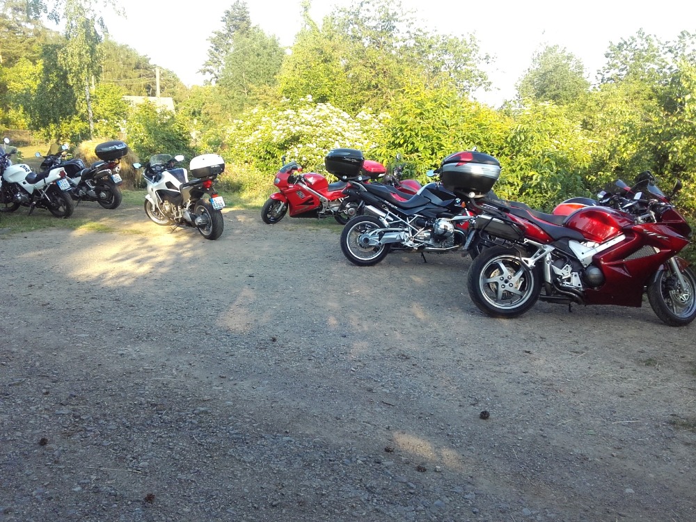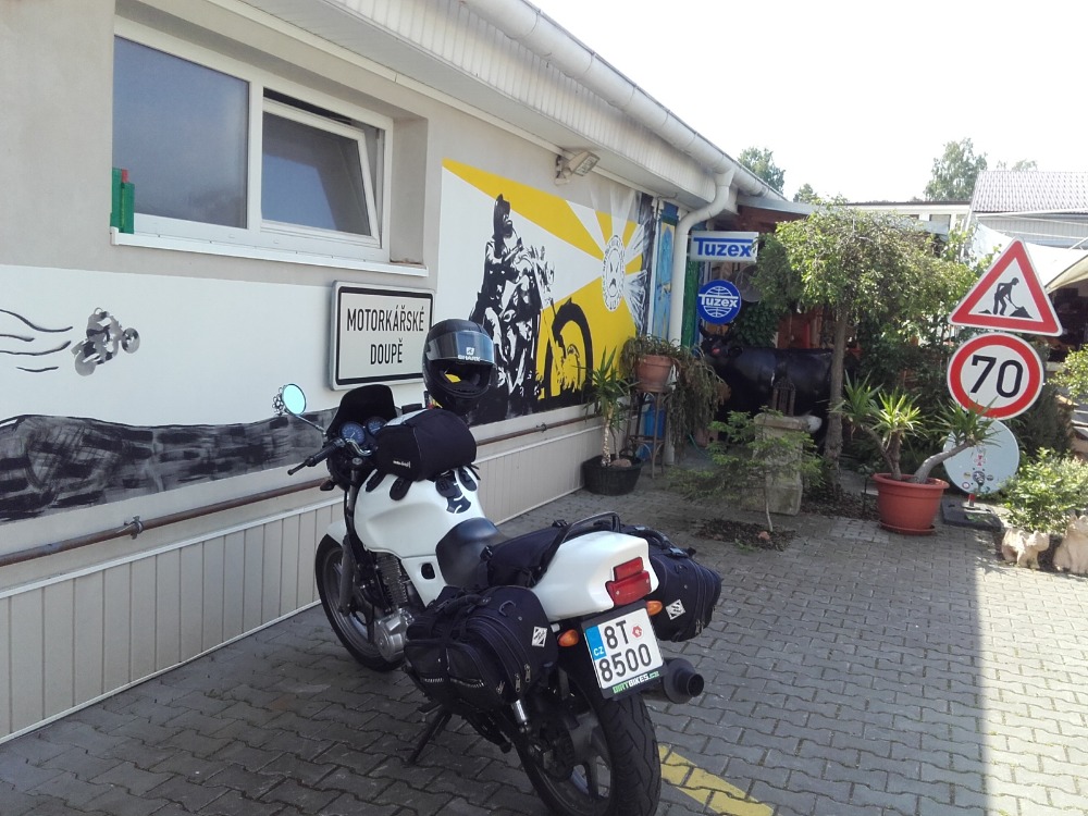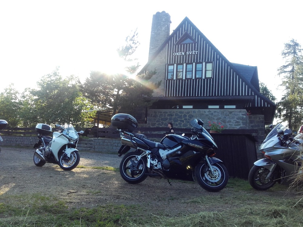V pátek dopoledne vyrážím rychlejší cestou směr Šumperk, kde jsem měla mít sraz s Vladkem. Začal kolotoč SMSek a telefonátů s infem i o počasí s Vladkem, Gapyrou, Scorpim, Scallou a Jarakem. V jižní části republiky pršelo. Měla jsem štěstí. Azuro! Chlapi díky! BO!!! Neni čas... Rychlé rozhodnutí a domluva s Pavlou a Jarakem, že mě počkají, mě donutilo vzít to na Mohelnici a dál po I/35 do Vysokého Mýta. Jak už to bývá, cestáři můj zrychlený přesun zpomalili. Před Litomyšlí jsem si 20 min. na sluníčku odpočinula v koloně a za ní, pro změnu v objížďce, přes kotěhůlky… Dále na Chrudim a Kovářov probíhala cesta v pohodě. Přivítání, nezbytná komůrka a v závěsu za krásným VFRem pokračování na sraz. Další zastávka byla v Humpolci v Motodoupěti. Nikdy jsem tam nebyla a původně krátká zastávka se protáhla. Zapovídali jsme se s majitelem, který nám ochotně ukázal místa na přespání a doporučil partnerská místa (www.motorkarskydoupe.cz). Pokračovali jsme na Pelhřimov a po I/19 až do Milevska. V Kovářově jsem toho měla plný ruce a kolena. Jarak řekl: Vydrž. Je to kopec naproti.