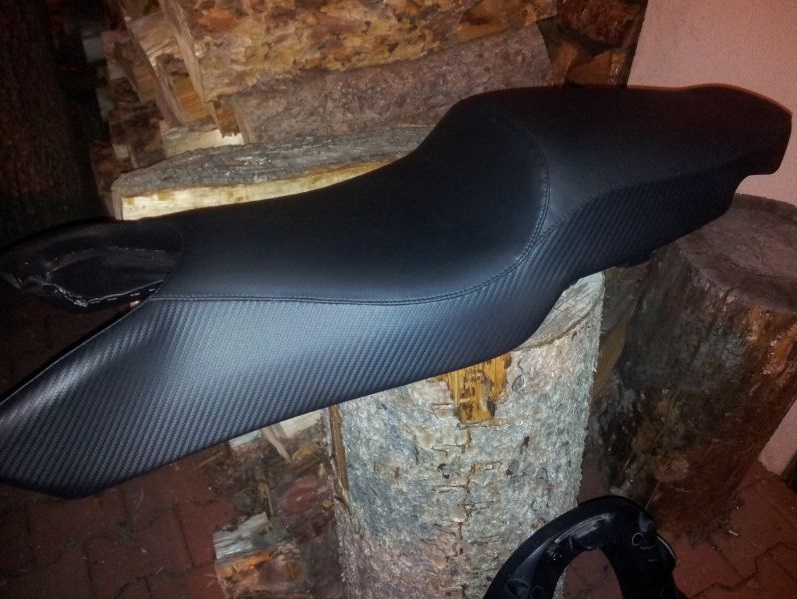 Sedlo jsem objednal u firmy HZMOTO . Je celogelové, jezdec i spolujezdec. Pohoda, spokojenost. Zašlete jim sedlo, oni jej zašlou do Francie, kde jej přešijí dle vašeho grafického návrhu a pošlou zpět.