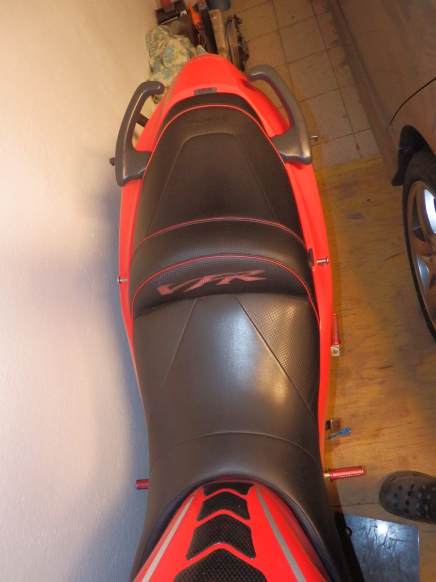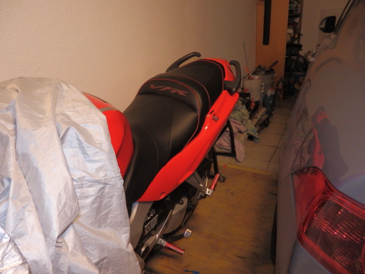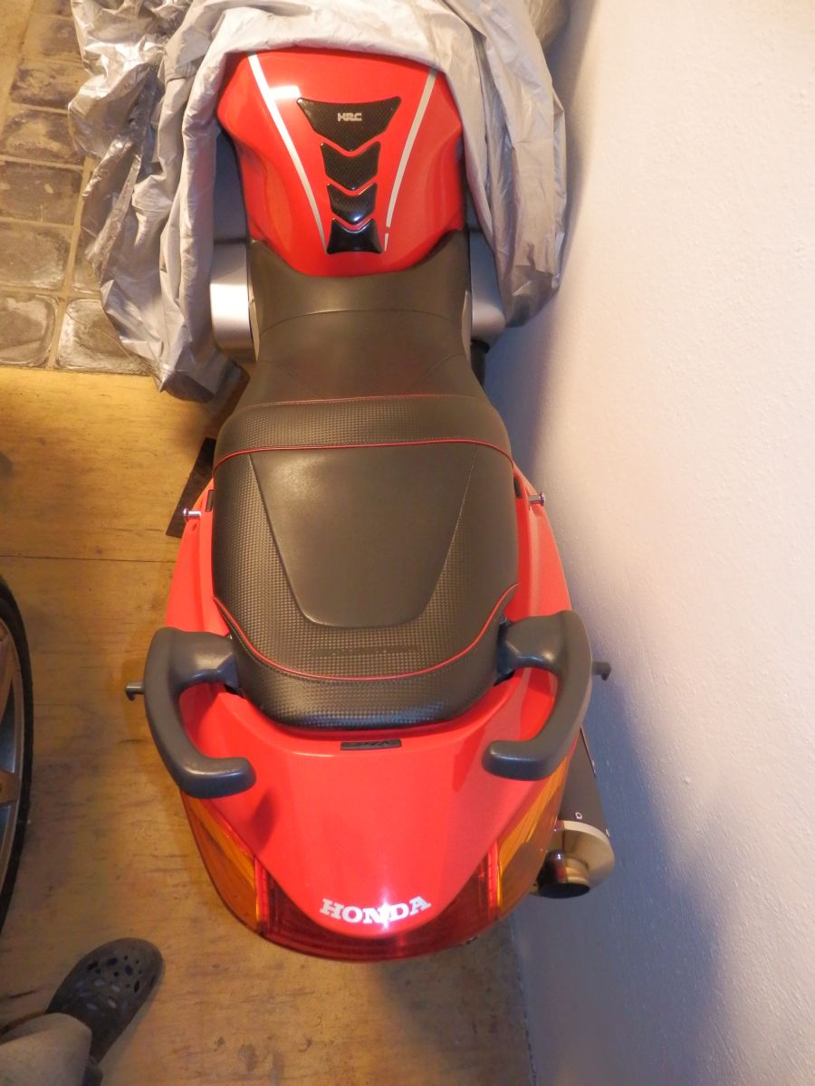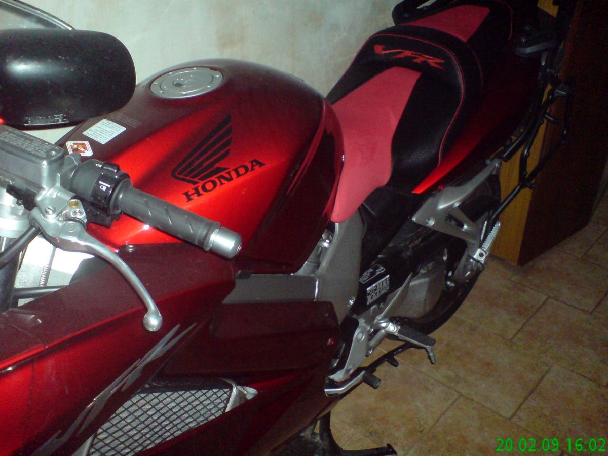 Jak už to tak bývá nápadů byla spousta, finance omezené, ale "když ji miluješ, není co řešit". Jedna z věcí do kterých jsem se rozhodnul jít bylo prošívané sedlo. Těch cca 8 let zpátky to u nás v republice nebylo rozhodně nic častého a tak i možnost výběru dodavatele byla značně omezená. Jako nejlepší volba mi vyšlo sedlo Bagster. Především protože na ně byly nějaké recenze a co jsem uvítal byla možnost jej objednat přes prodejce HZmoto z Nových domků u Jihlavy, tedy nedaleko od nás. Nejprve jsem začal shánět druhé sedlo, protože originál jsem si chtěl ponechat netknutý. To se zadařilo za mrzký peníz s tím, že u řidiče bylo o 3 cm vybrané. S tímto sedle jsem oslovil pana Hlouška z HZ a začli jsme se domlouvat jak vše proběhne. Takže v první řadě design. Za druhé výška a délka plochy pro jezdce/ spolujezdce. Zde je mám pocit možnost úpravy v rozmezí +-2cm snad všemi směry. Další možnost je volba gelu. Vzhledem k tomu, že vlastním výroční model a ten je barevně poměrně divoký něchtěl jsem se sedlem přestřelit a dlouze zkoušel různé kombinace. Prodejce mi nabídnul ať si půjčím kompletní vzorník na víkend domů což jsem samozřejmě využil. Po dlouhém rozmýšlení a upravování v garfických programech bylo jasné, že chci něco decentního, nebarevného, protože to už by bylo na danou motorku moc. I dnes jsem s volbou spokojen a nevolil bych zřejmě jinak. Původní výšku jsem nechal upravit na standartní , gel jsem nakonec neobjednal. Dodání sedla bylo po 6 týdnech od objednání tak jak bylo slíbeno. Dosud má sedlo za sebou 7 sezon a cca 80t.km. Nikde nevykazuje žádné opotřebení. Snad jen prošívaný nápis VFR už je trochu ztmavlý, ale zřejmě by to napravila nějaká pěna na čistění čalounění. Co se týče pohodlí tak je určitě příjemnější než originál. Spolujezdec ani při prudším brždění nesjiždí na řidiče. Polstrování-tuhost od Bagsteru je pro mě osobně tak akorát. Ani tvrdé ani měkké. Je možná o něco poddajnější než originál, ale ne mekké, což nemám rád. Tisíc km za den se na něm dá zvládnout, ale rozhodně to není nějaká pohodička -což je dáno ale spíš motorkou než sedlem samotným. Zkrátka na sedlo samotné si nelze stěžovat ani při cestování ani při sportovnějším zacházení.