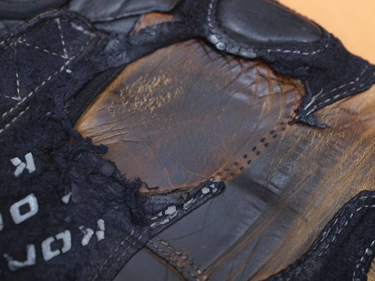 Tyhle rukavice jsem koupil v roce 2009 a v současnosti mají najeto přes 100 000 km. Když jsem je kupoval u Milana Kamiše, řekl mi: „Podívej se, je to Čína. Ale je to kvalitní Čína.“ A měl pravdu. O rukavice jsem se vůbec nestaral. Žádná údržba, čištění, impregnace, ošetření voskem na kůži. Nic. Pouze jezdily, mokly v dešti a potily se se mnou v horku. Nebyly vyloženě levné, stály tuším 1500 kč. S ohledem na životnost dobrá cena. Aktuálně jsou tedy již „notně jeté“, ale prodřely se pouze dlaňové nášivky a pár stehů na prstech. Rukavice mají integrovaný plastový chránič kloubů. Na rozdíl od proslulých rukavic firmy Nazran, v případě deště, nebarví.