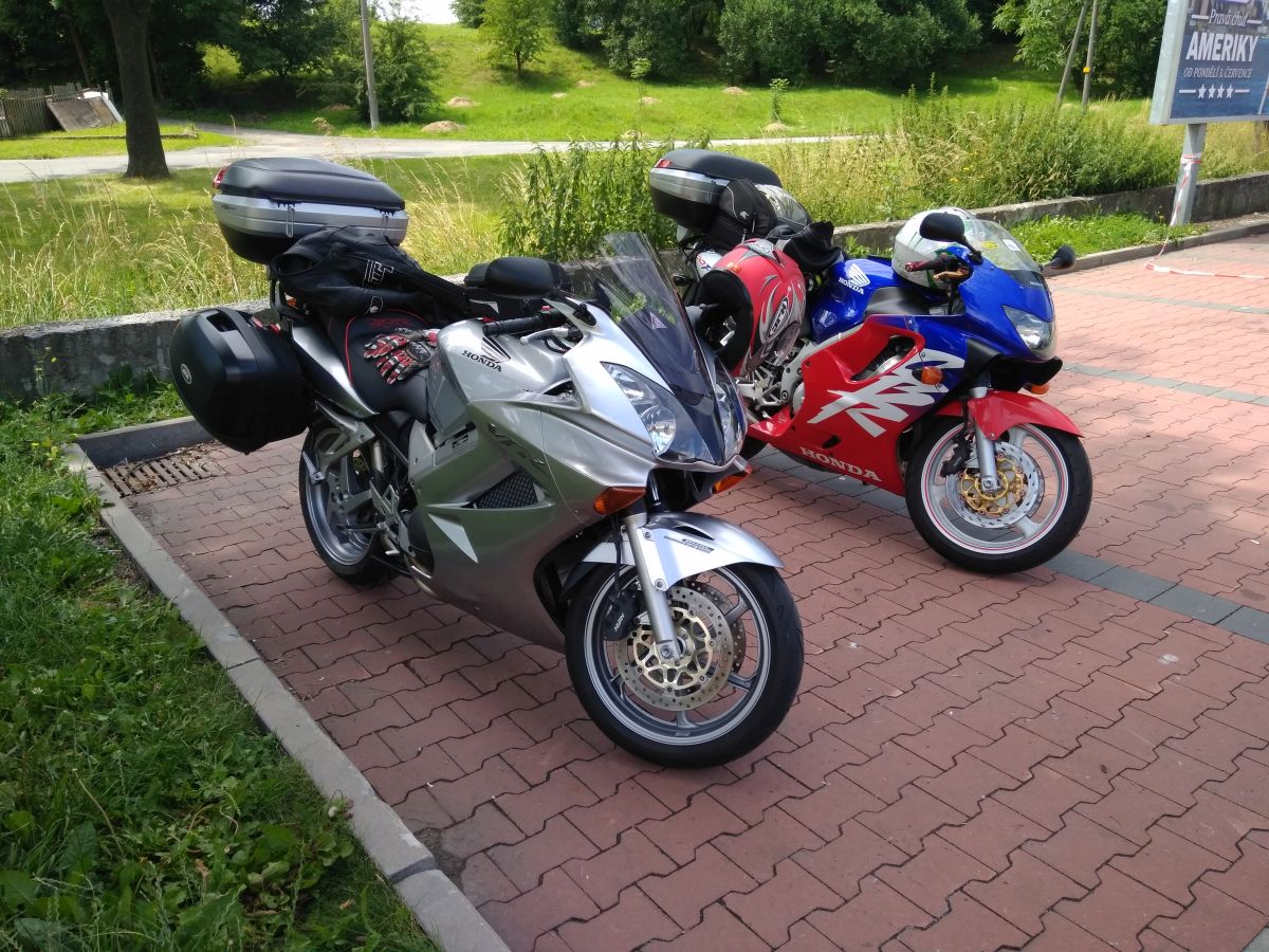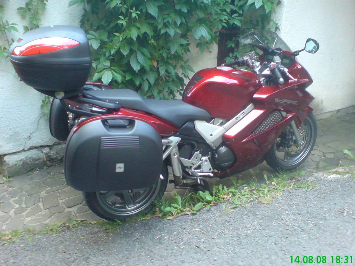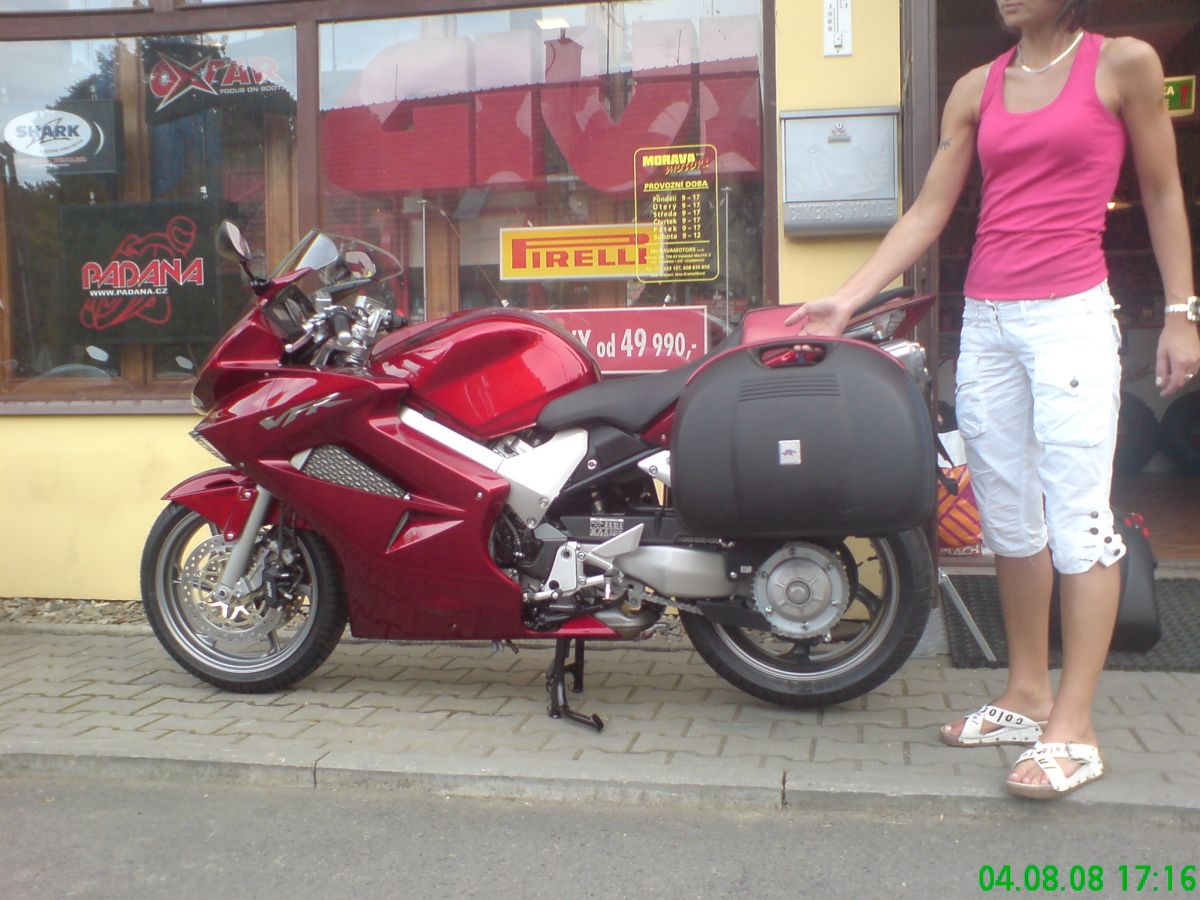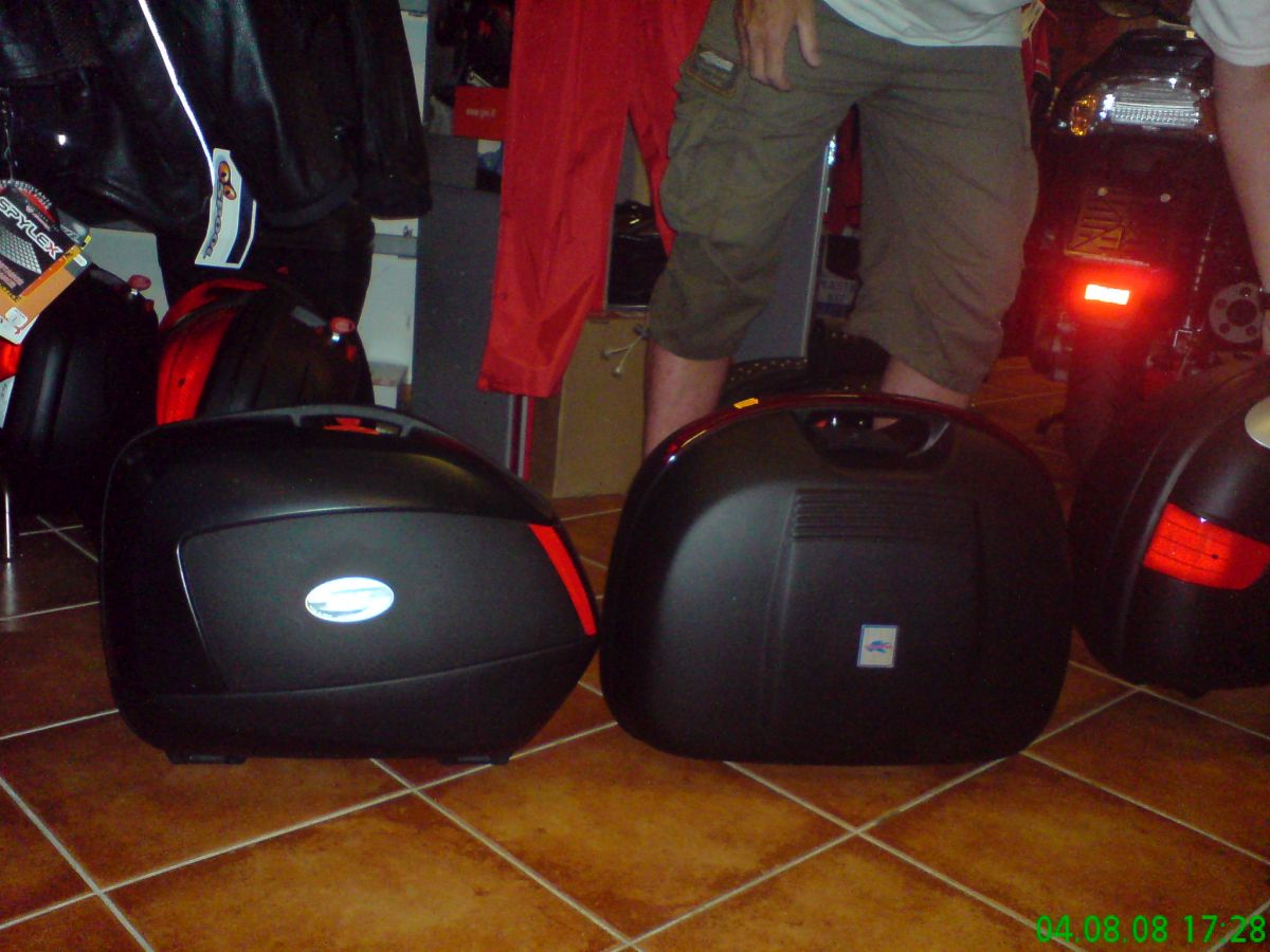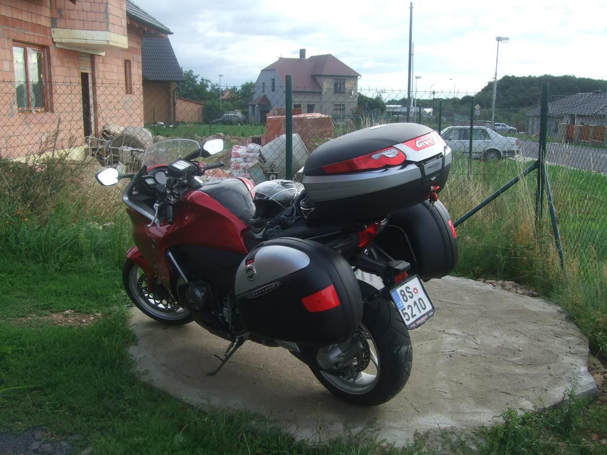 Já jsem koupil kufry ihned v honde s novou motorkou. Kufry honda jsem po poradě v prodejně zavrhnul. Byly jednak drahé a jednak mělz malej objem (pro moje časté a dlouhodobé cestování naprosto nevhodné). Byly sice pěkné, ale co naplat? Tak jsme vybírali s Jankou (prodejkyně v Hondě) podle mých potřeb a podle ceny. Zkoušel jsem jich více. Nakonec zvítězila varianta použít zadní top case, který jsem měl ještě z Fireblade, dokoupil jsem pouze držák. Bočáky jsem koupil úplně nové. S Jankou jsme se shodli na replice Givi. Byly levné a hlavně velké objemově. Maximalni spokojenost. Mám s nimi projetou půlku, hlavně balkánské Evropy + Itálii, Ukrajinu atd. Nabalím všechno, co potřebuji na 14ti denní dovolenou. Mám jestě tank vak, ale ten při cestách používám spíše jenom na nepromoky, doklady a na mapy pod slidou. Jezdím plně naložený ve dvou s batůžkem a plnými kufry i přes 200km/h. Žádný problém. A že mám s kuframa naježděno "veľmi veľa", nie je pochyb. Jsem přece cestovatel. :-). Montáž byla jednoduchá, vsechno pasovalo jak melo. Za cca 2 hoďky jsem mel držáky namontované i pri mé technické zručnosti (jsem totiz hoteliér, ne technik).