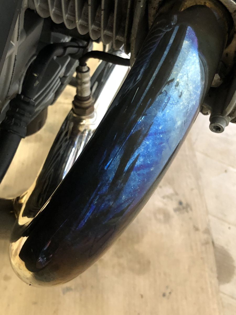 Svody na VFR nebyly stříbřité snad ani z výroby. Bral jsem to zkrátka jako fakt, že na tomhle Honda ušetřila. Zkusmo jsem vzal Bluing Removerem kousek svodu a nestačil se divit. Opravdu stačilo „poťapat“ a setřít a svod zasvítil stříbřitě. Vzhledem k tomu, že kvůli opravě zadního tlumiče budou muset svody dolů, uvidím, jak se čistič předvede, ale na tom kousku musím překvapivě konstatovat, že čištění jde snadněji než čištění chromů na bavoráku.