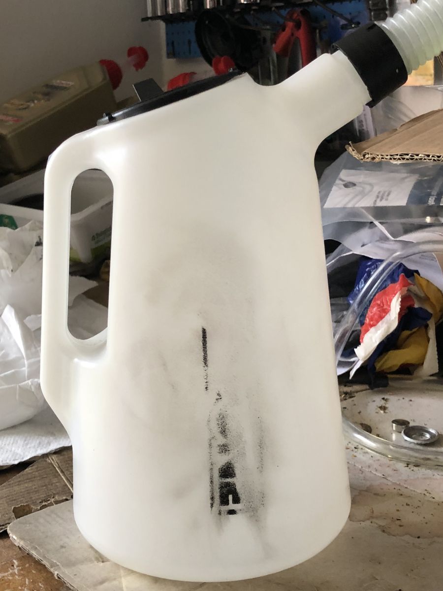 První, nejlevnější a nejsnáze dostupná byla možnost použít kuchyňskou odměrku. Stála pár korun, byla cejchovaná. Víc jsem neřešil. Měl jsem. Plast, ze kterého byla měrka vyrobená není s benzínem kompatibilní.