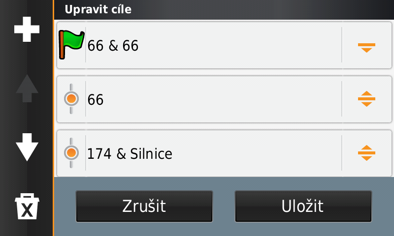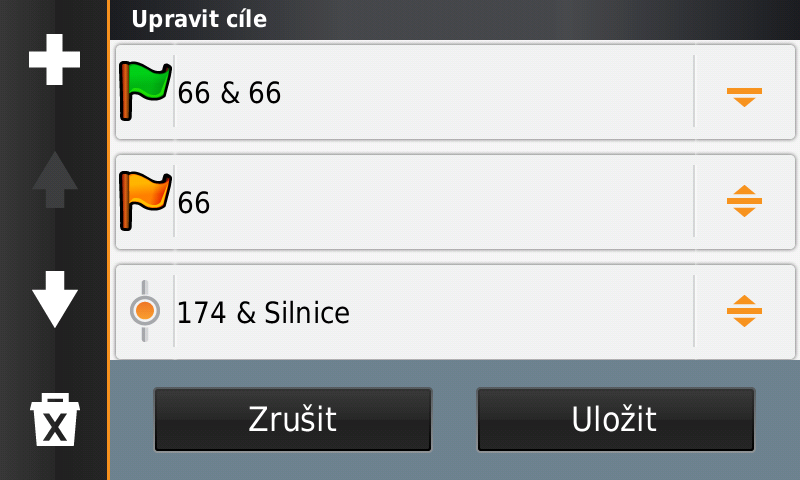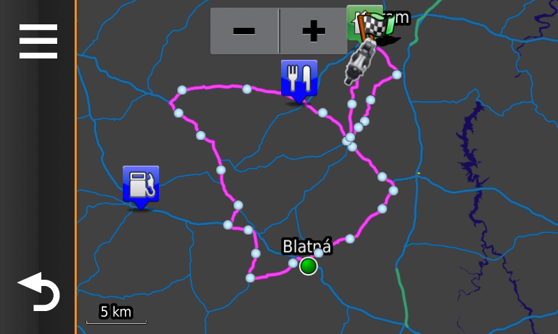 Další problém, se kterým jsem na Zumu 590 bojoval, byly trasové body. V Zumu 550 je trasový bod jednoduše trasový bod. Tečka na mapě, přes kterou vede vaše trasa. Když bod minete, Zumo 550 pokračuje po trase dál. Myslím, že jde nastavit, zda chci body projíždět za každou cenu (nechci). Jednoduché.