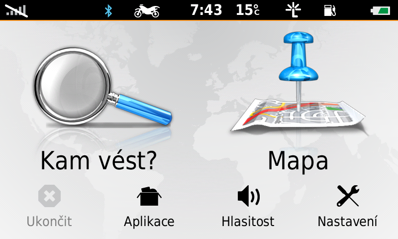 Zumo 550: “Kam vést/oblíbené/Trasy.” - Intuitivní volba.